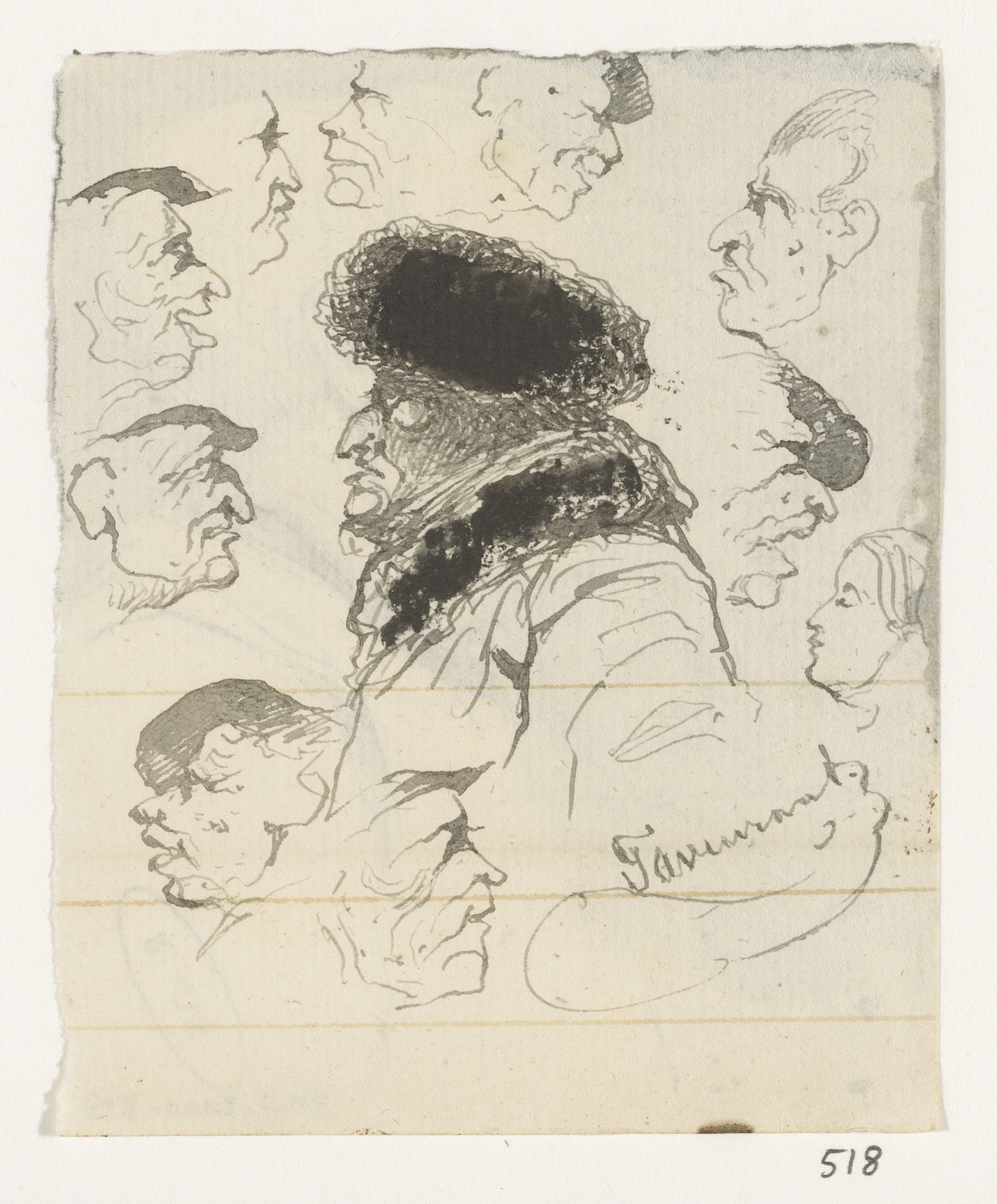 Kop met bontmuts omringd door koppen