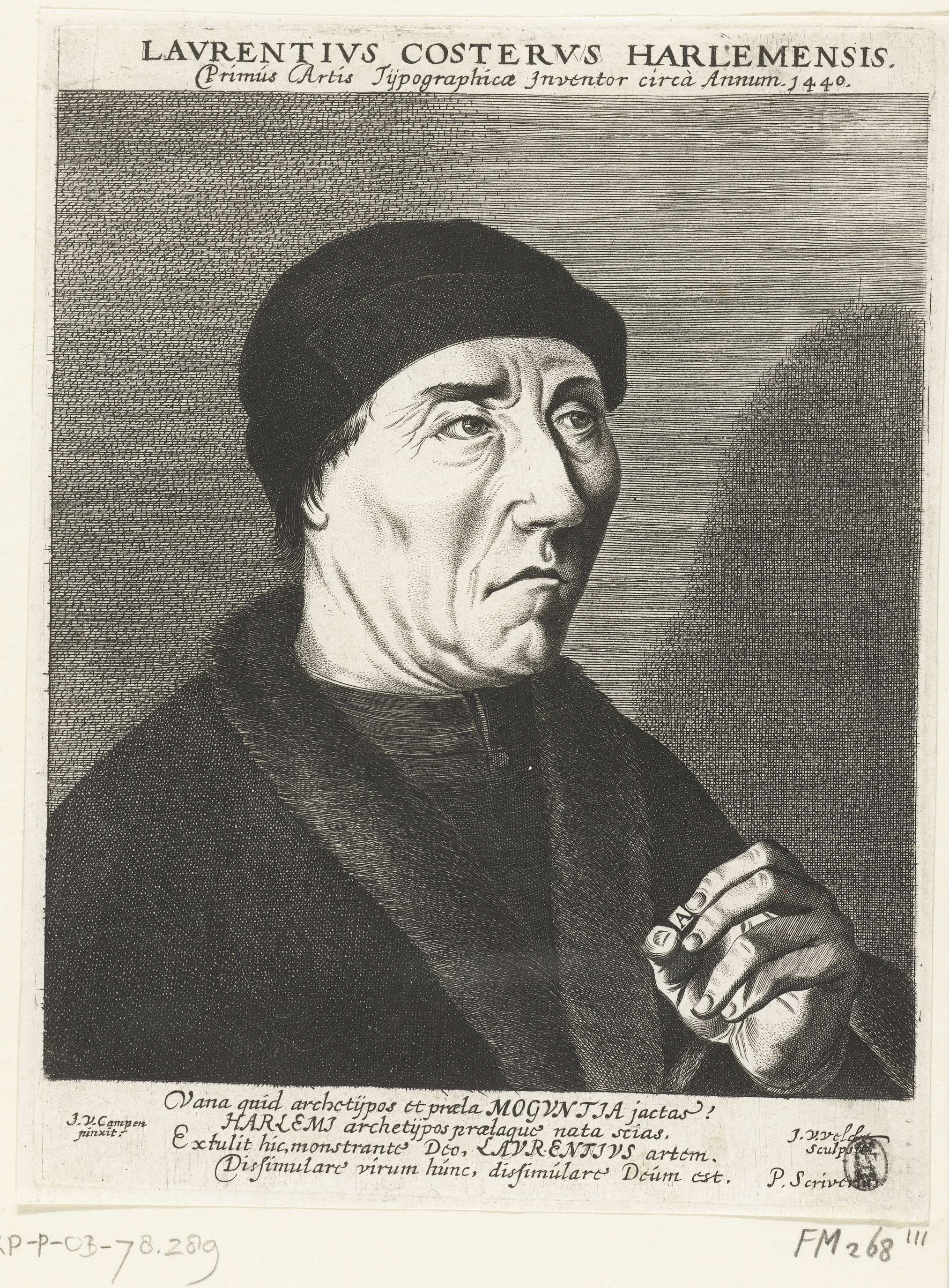 Uitvinding van de boekdrukkunst door Coster, ca. 1440