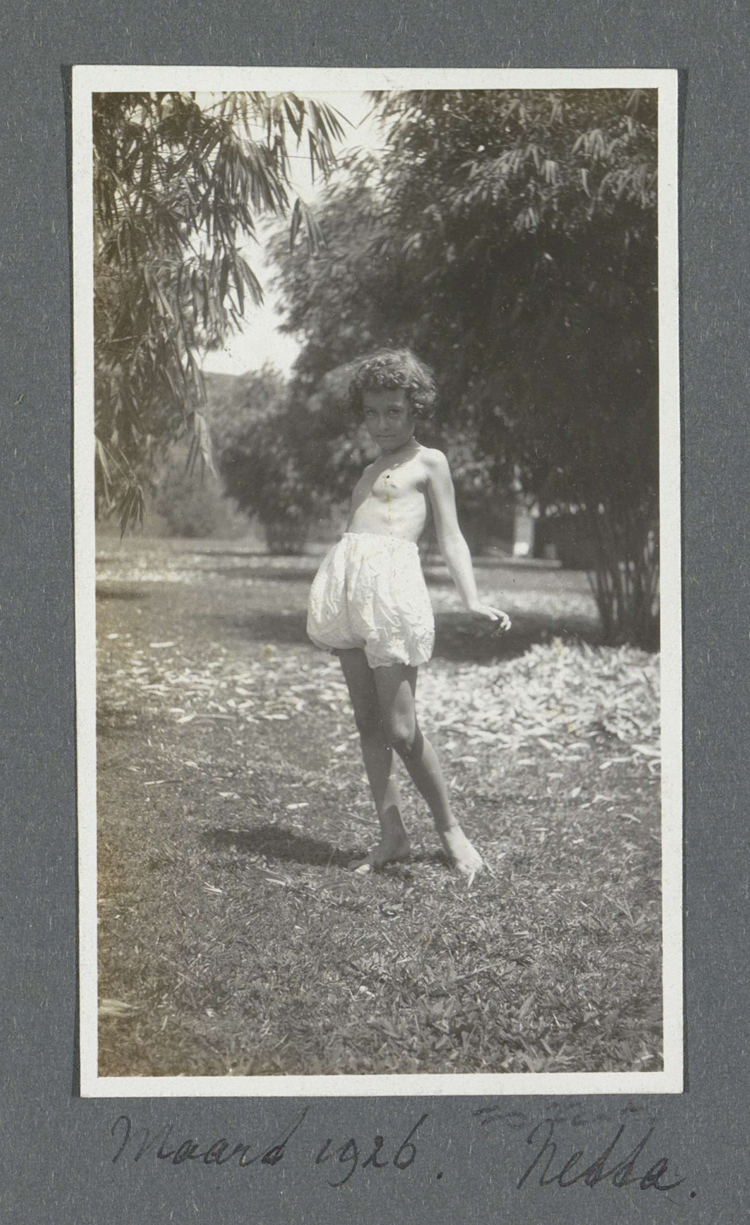 Portret van Netta Bergsma als kind in pofbroek in ee...