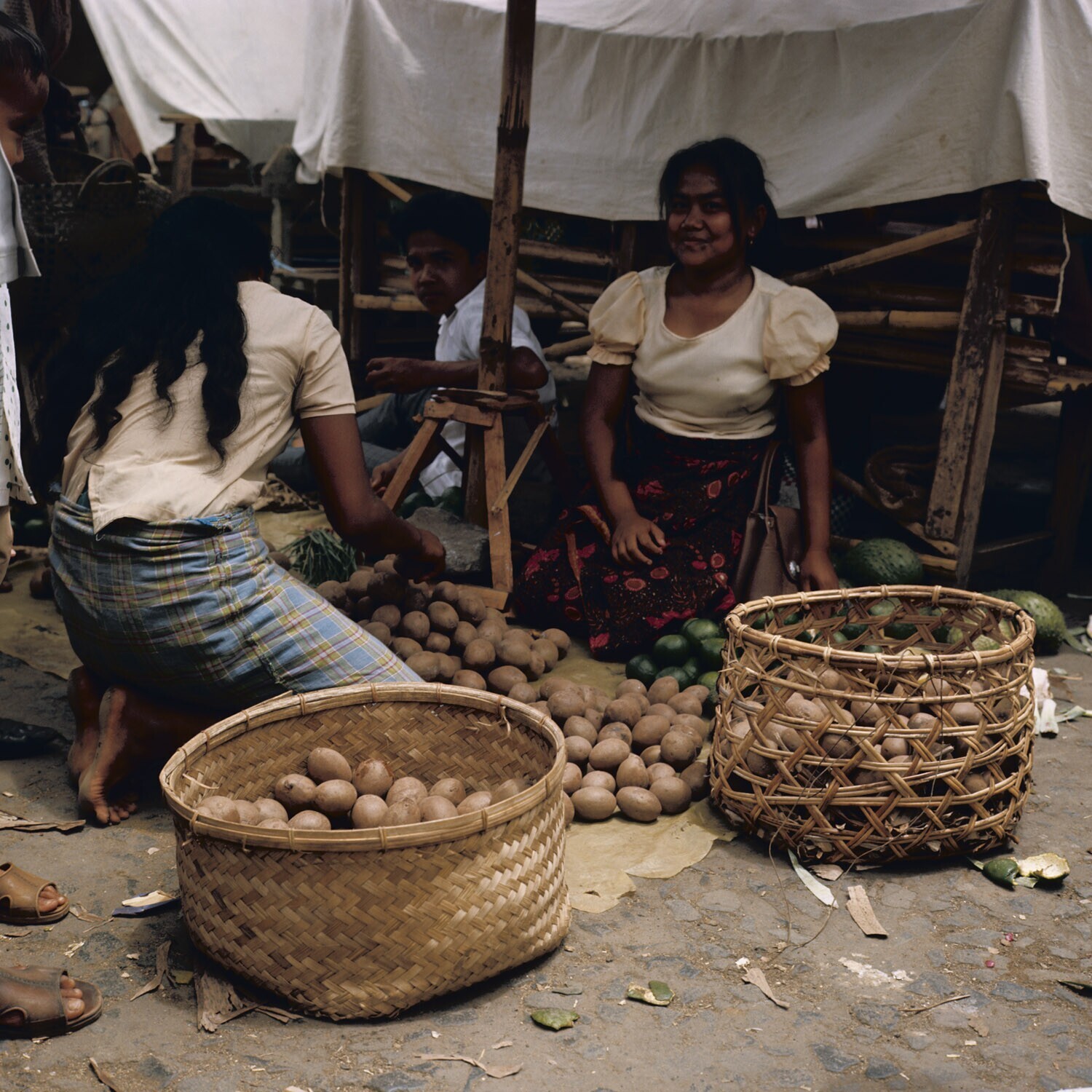 Verkoop van sawo's op de markt Batu Sangkar