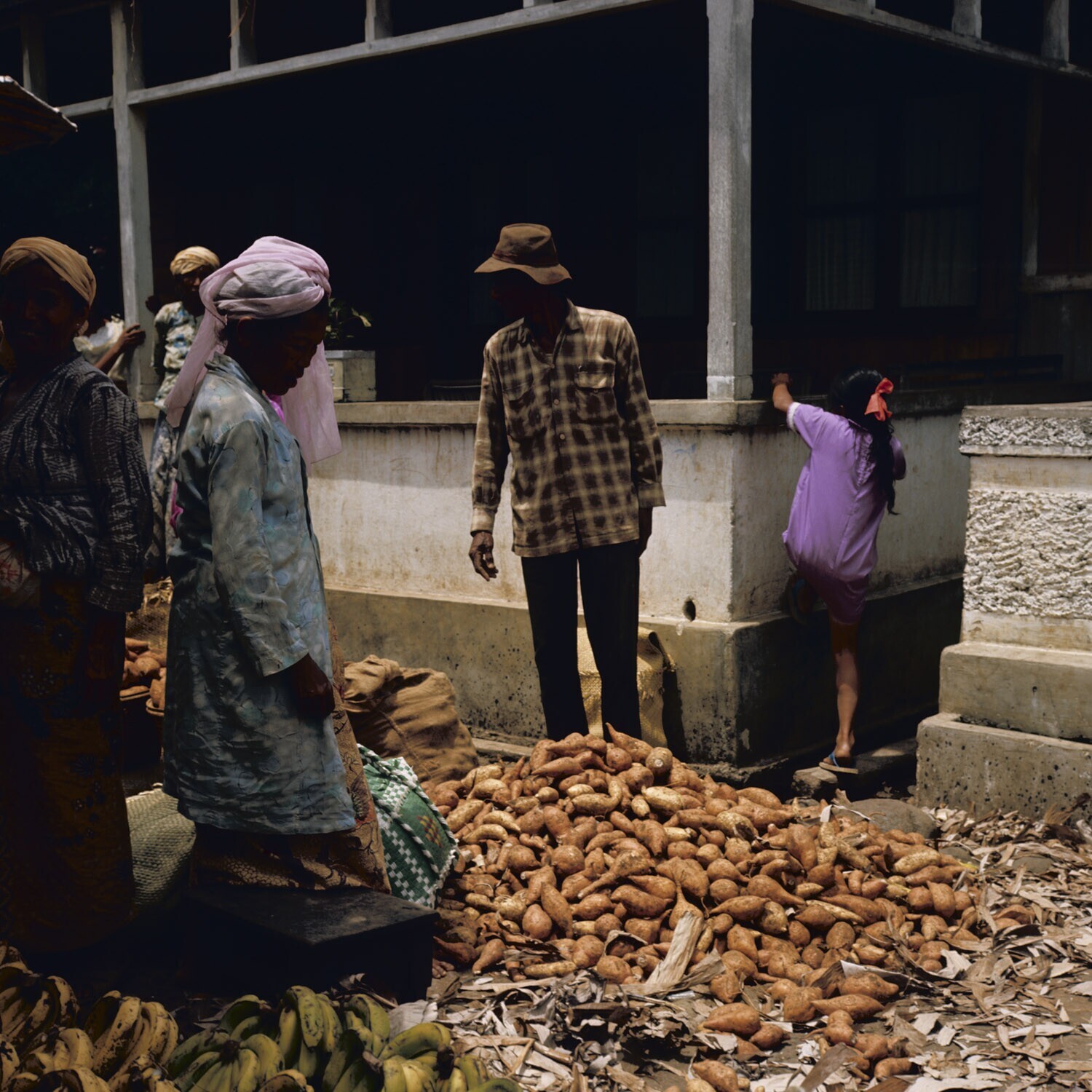Verkoop bataten op de markt Batu Sangkar