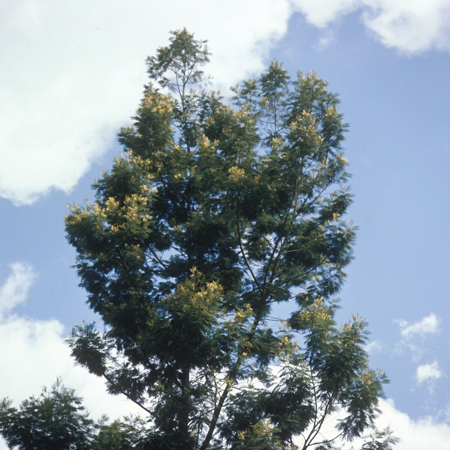 Gedeelte van de Acacia decurrens L. met bloemen