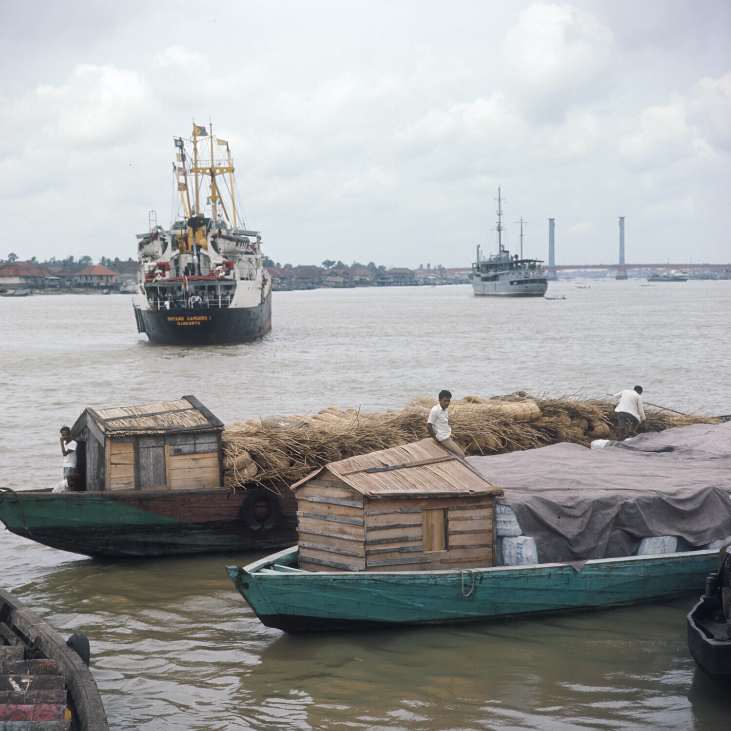 Coasters in de haven van Palembang