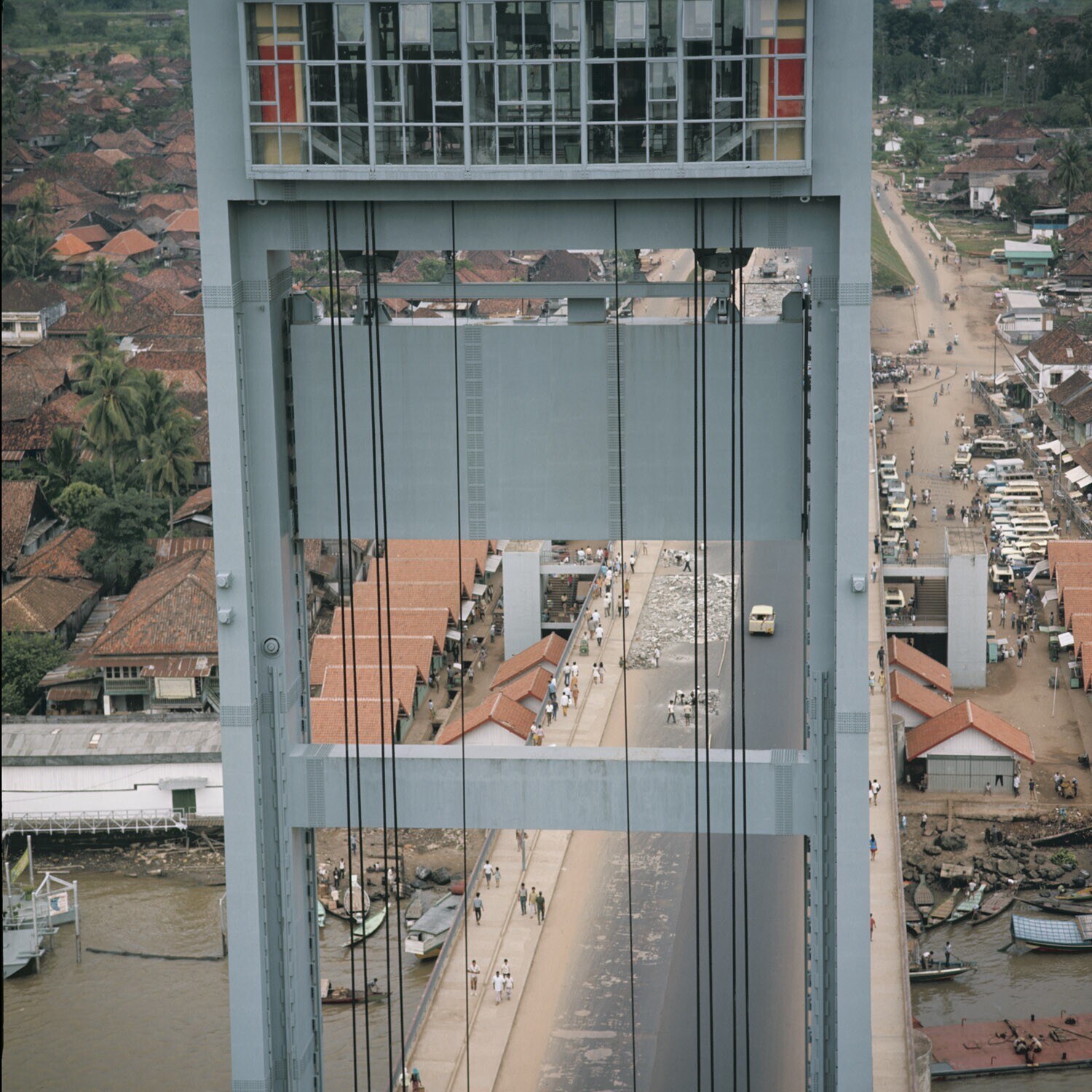 Close-up van de heftoren van de Amperabrug