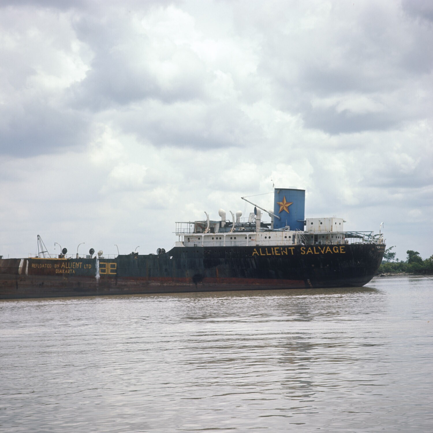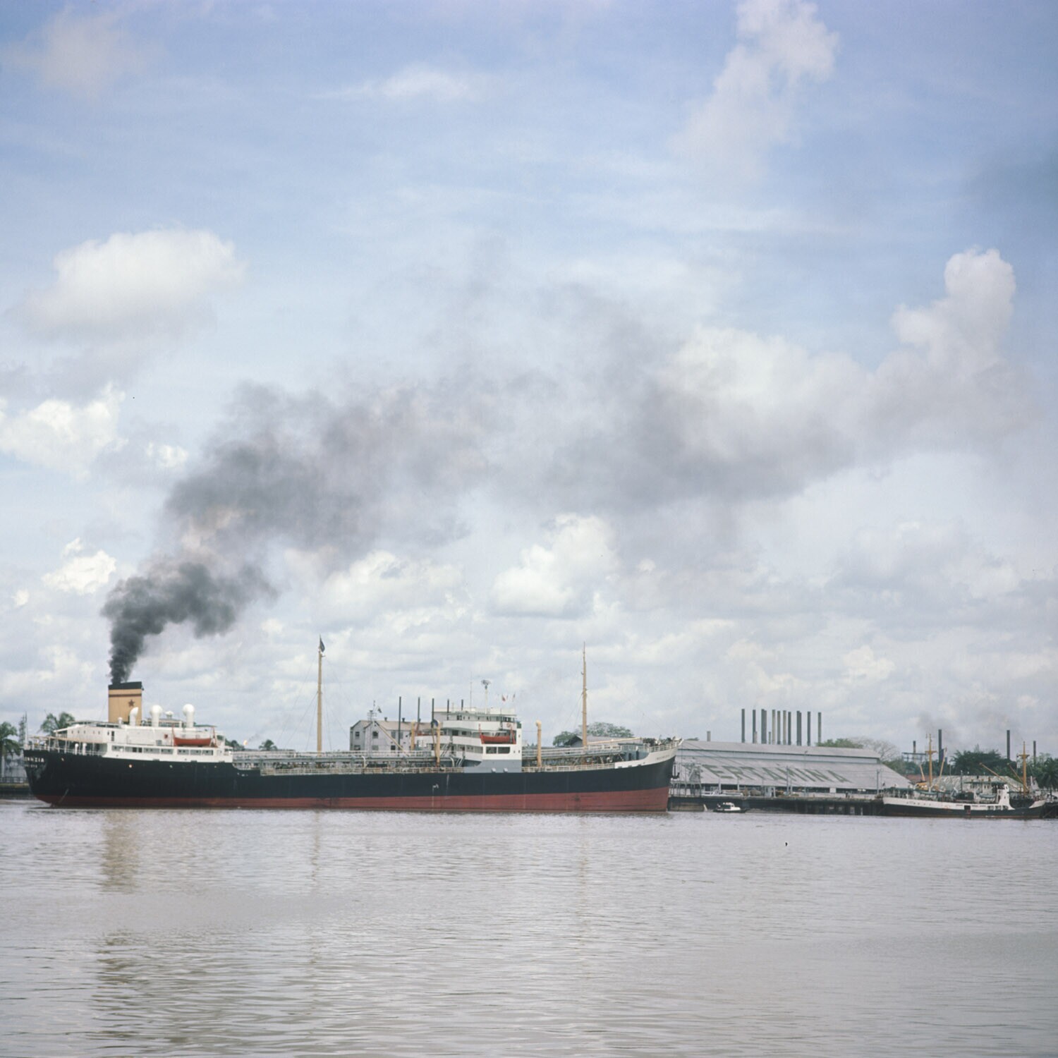 Tanker in de haven van Palembang