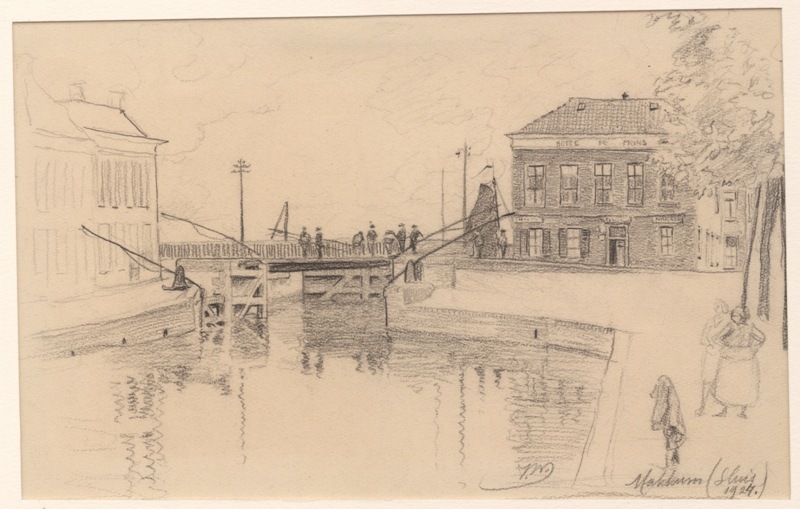 Gezicht op de Haven en de Zijl te Makkum en in het d...