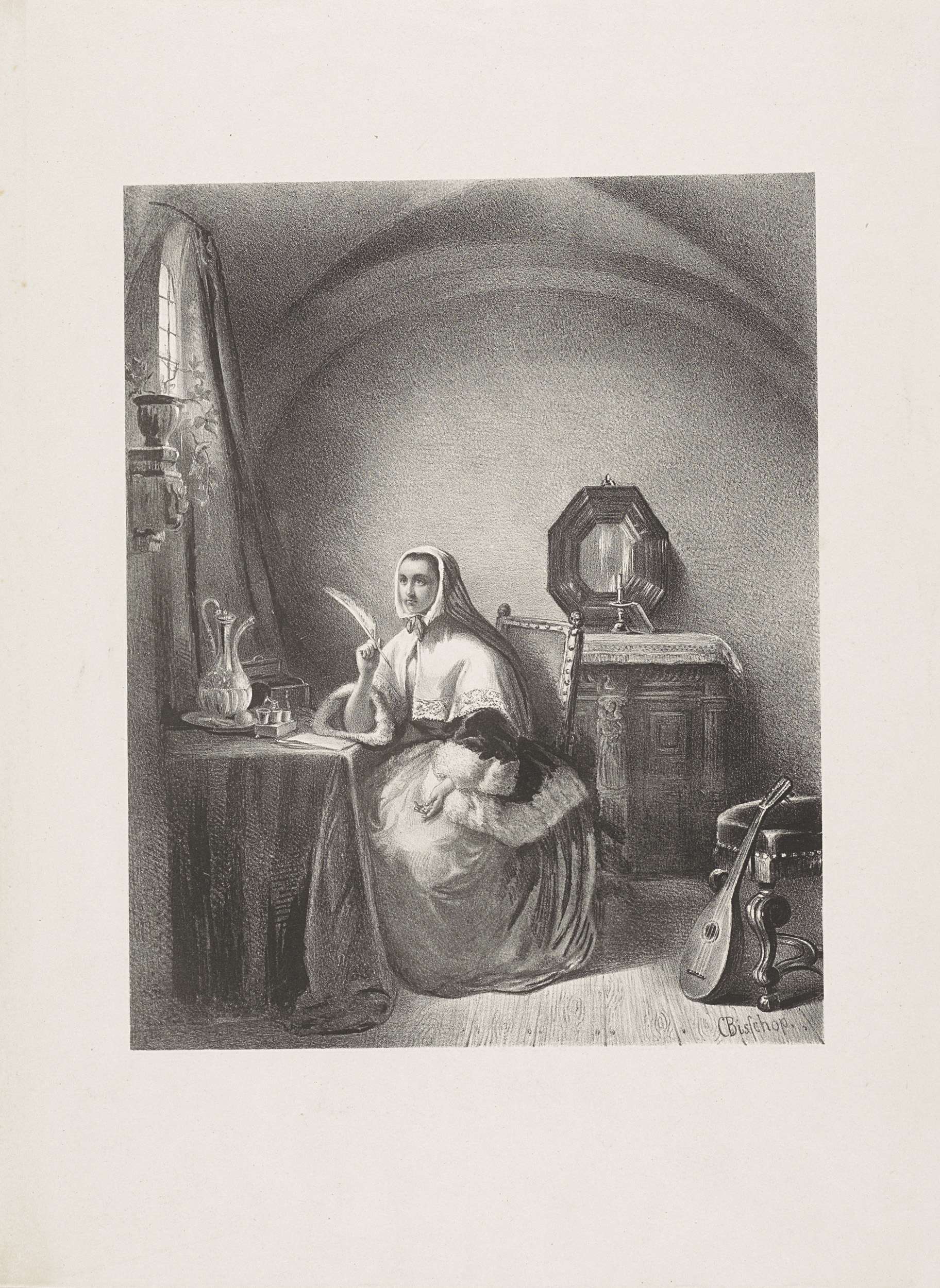 Schrijvende vrouw bij het raam