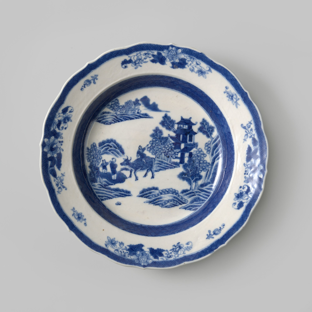 Diep bord behorende tot een Chinees, blauw eetservies