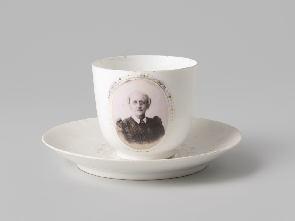 Kop en schotel met portret van Justina Philippina Ge...