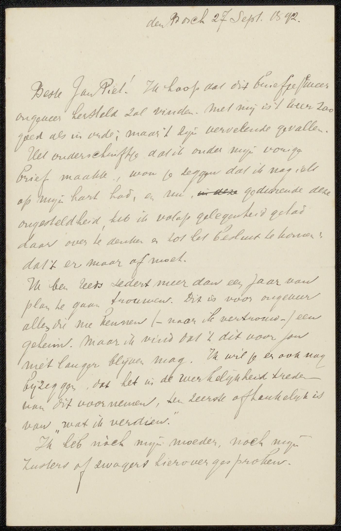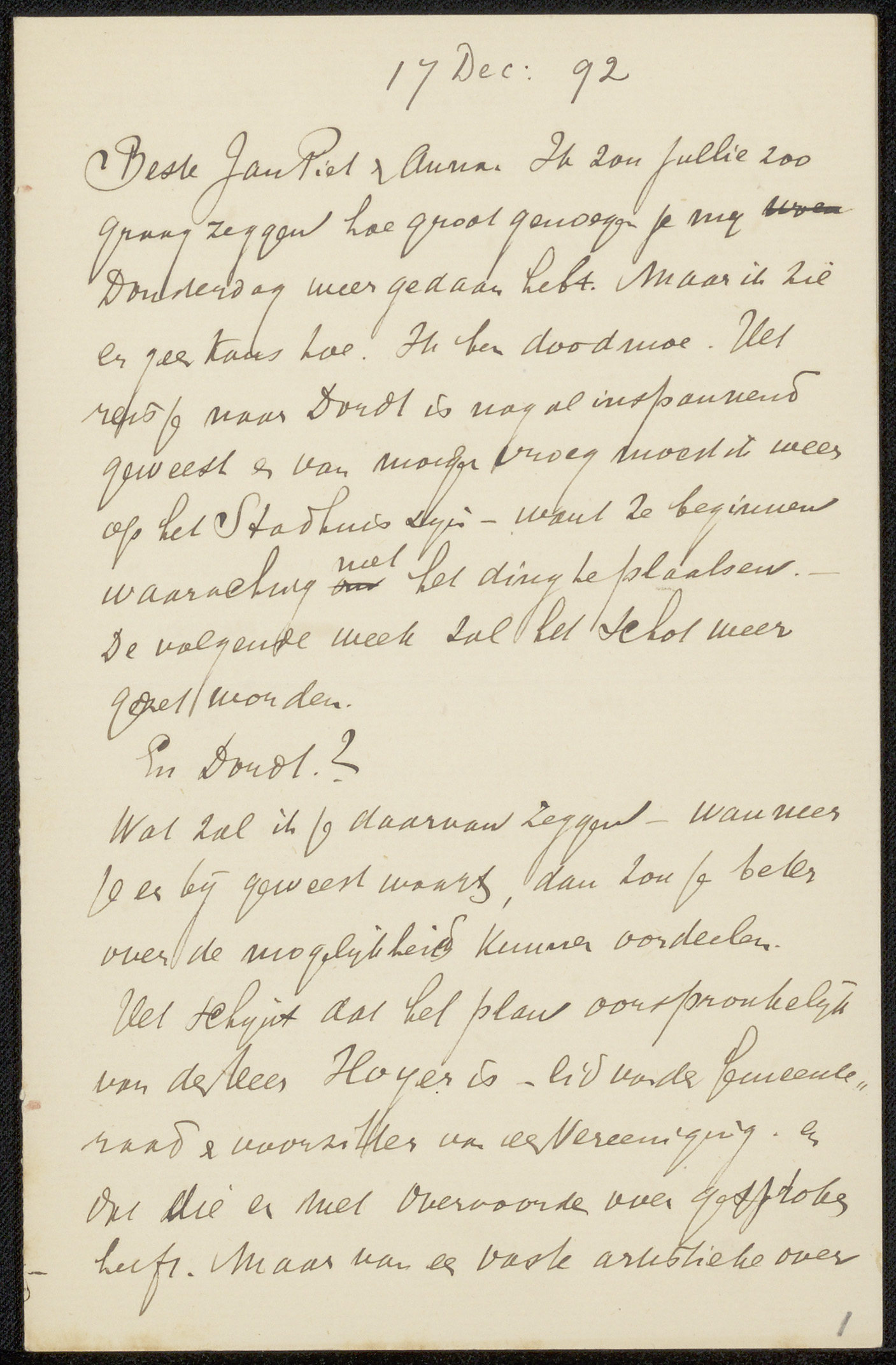 Brief aan Jan Veth en Anna Dorothea Dirks