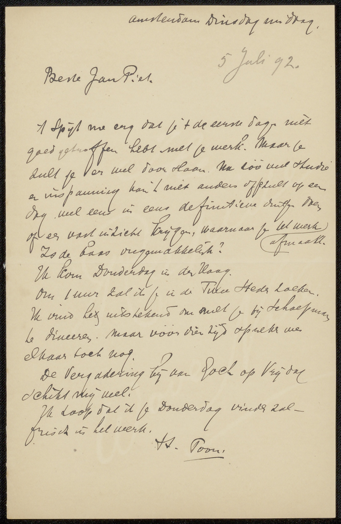 Brieffragmenten en aantekeningen uit archief Jan Veth