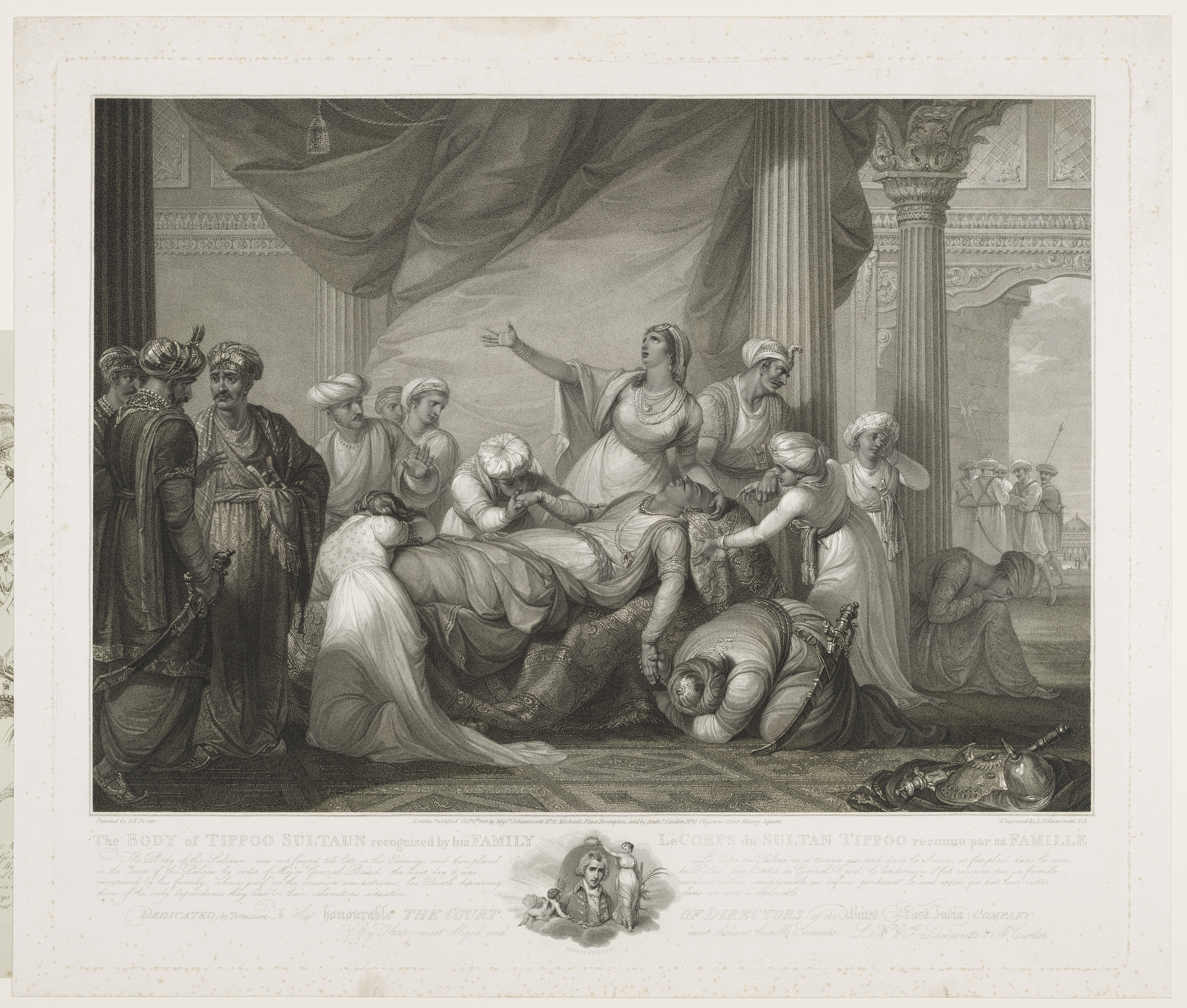 Sleutel bij de prent "Het lichaam van sultan Tippoo ...