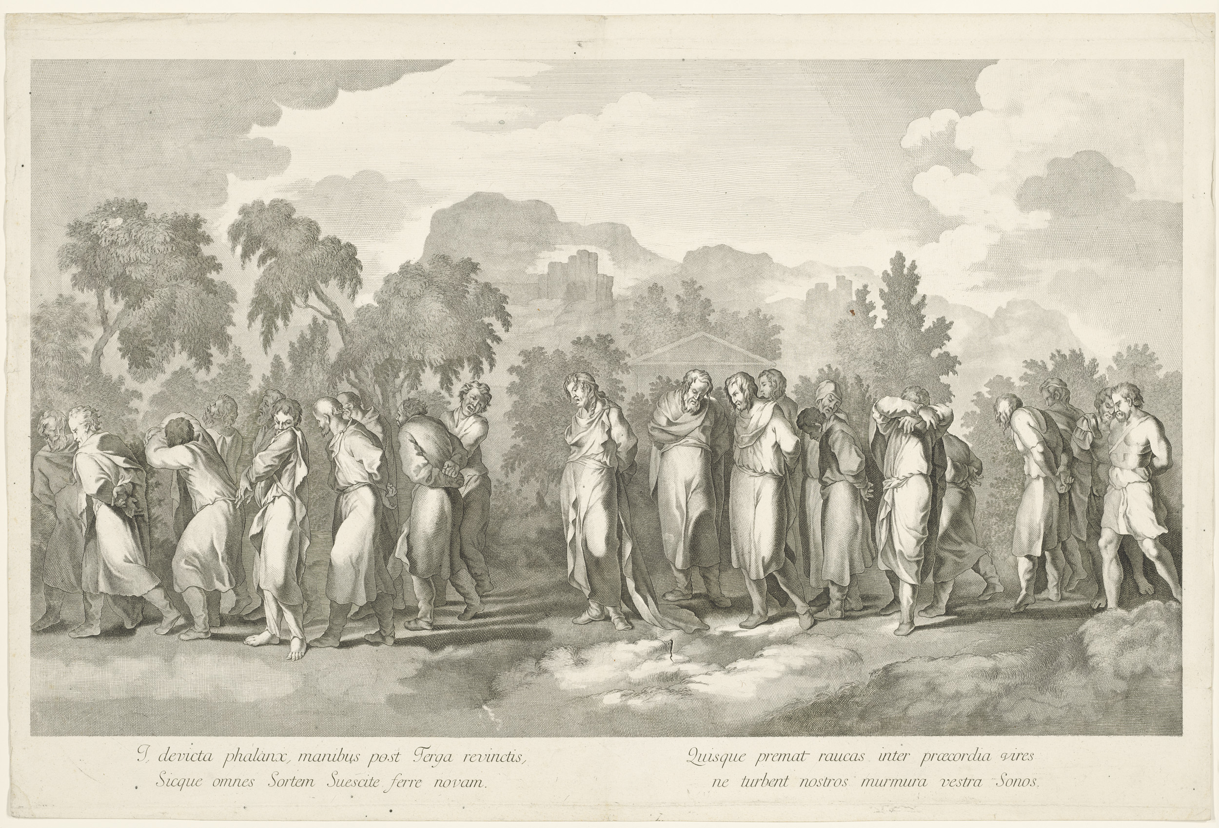 Stoet gevangenen in landschap
