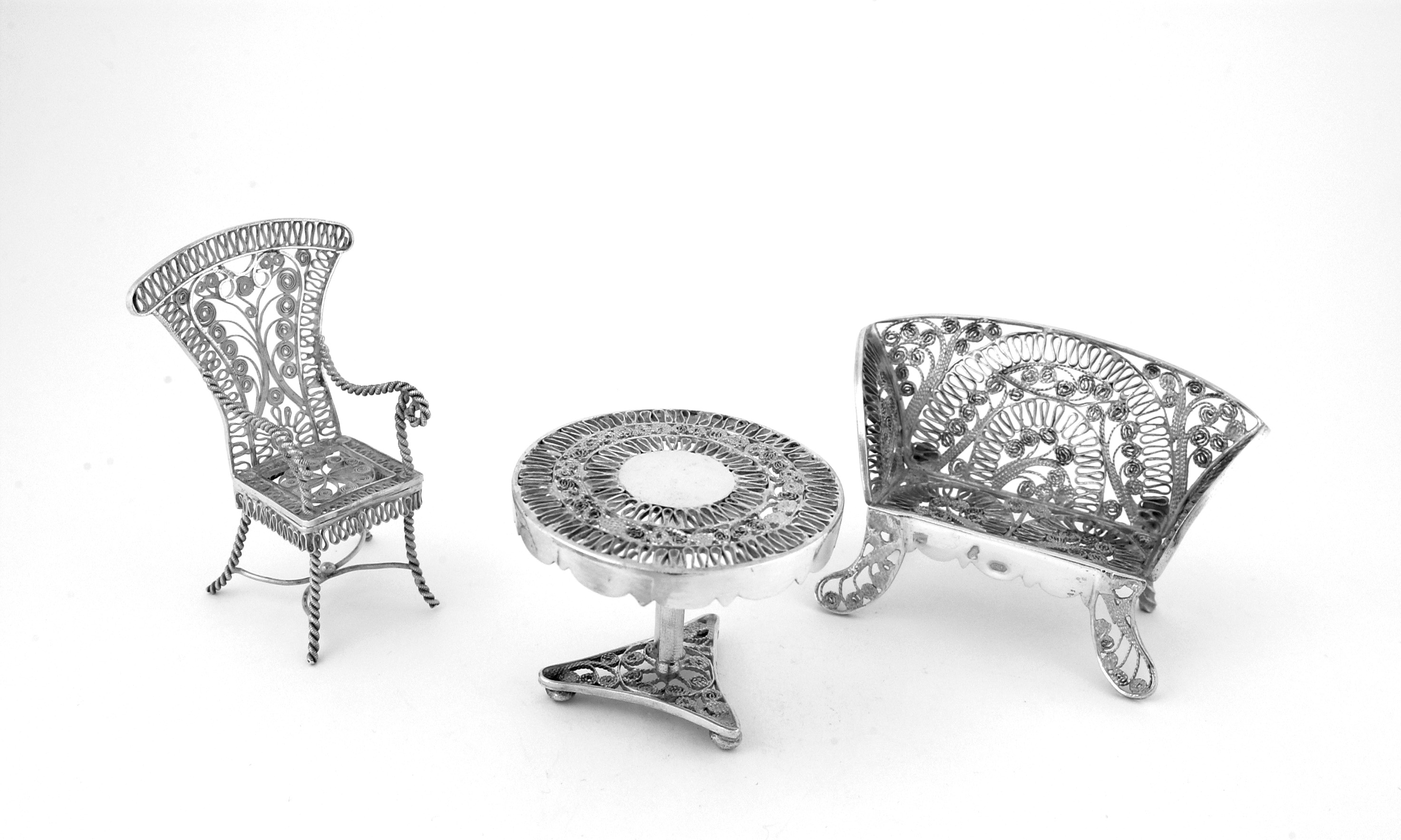 Voetenbank van miniatuur-ameublement in filigrain