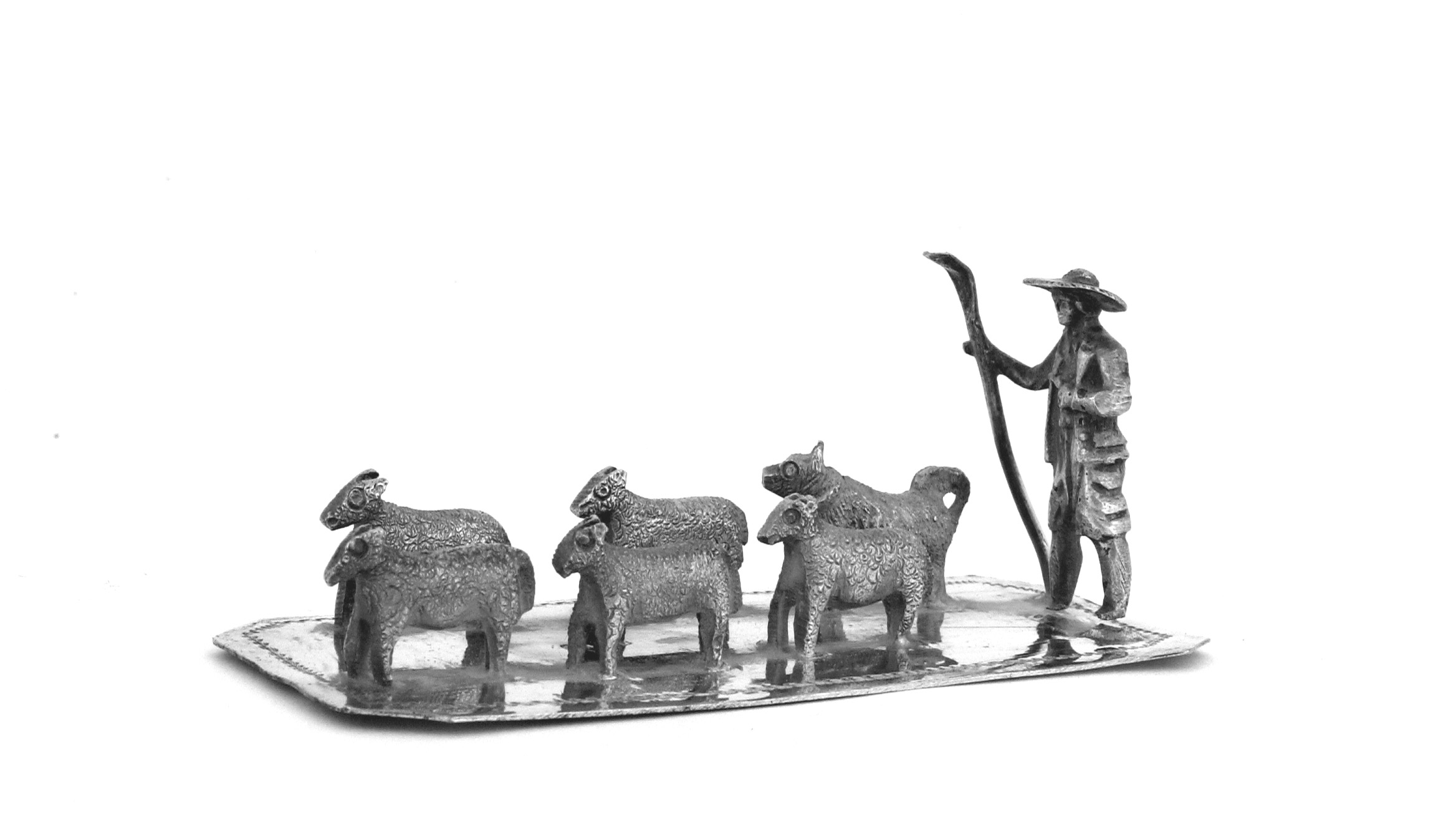 Schapenhoeder met 5 schapen en een hond