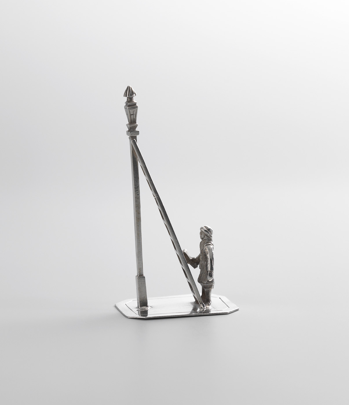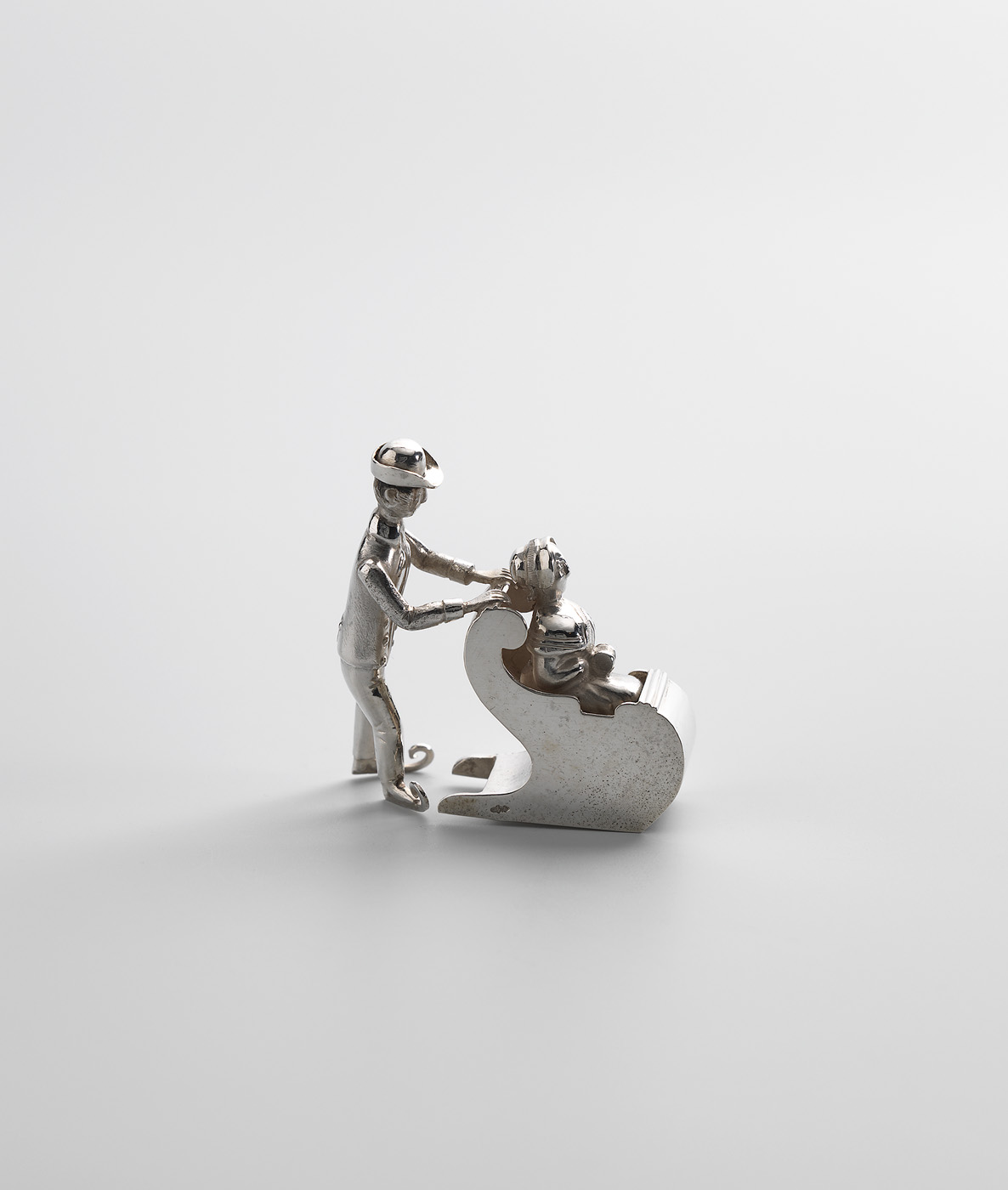 Duwslee met vrouwfiguur waarachter een duwende man o...