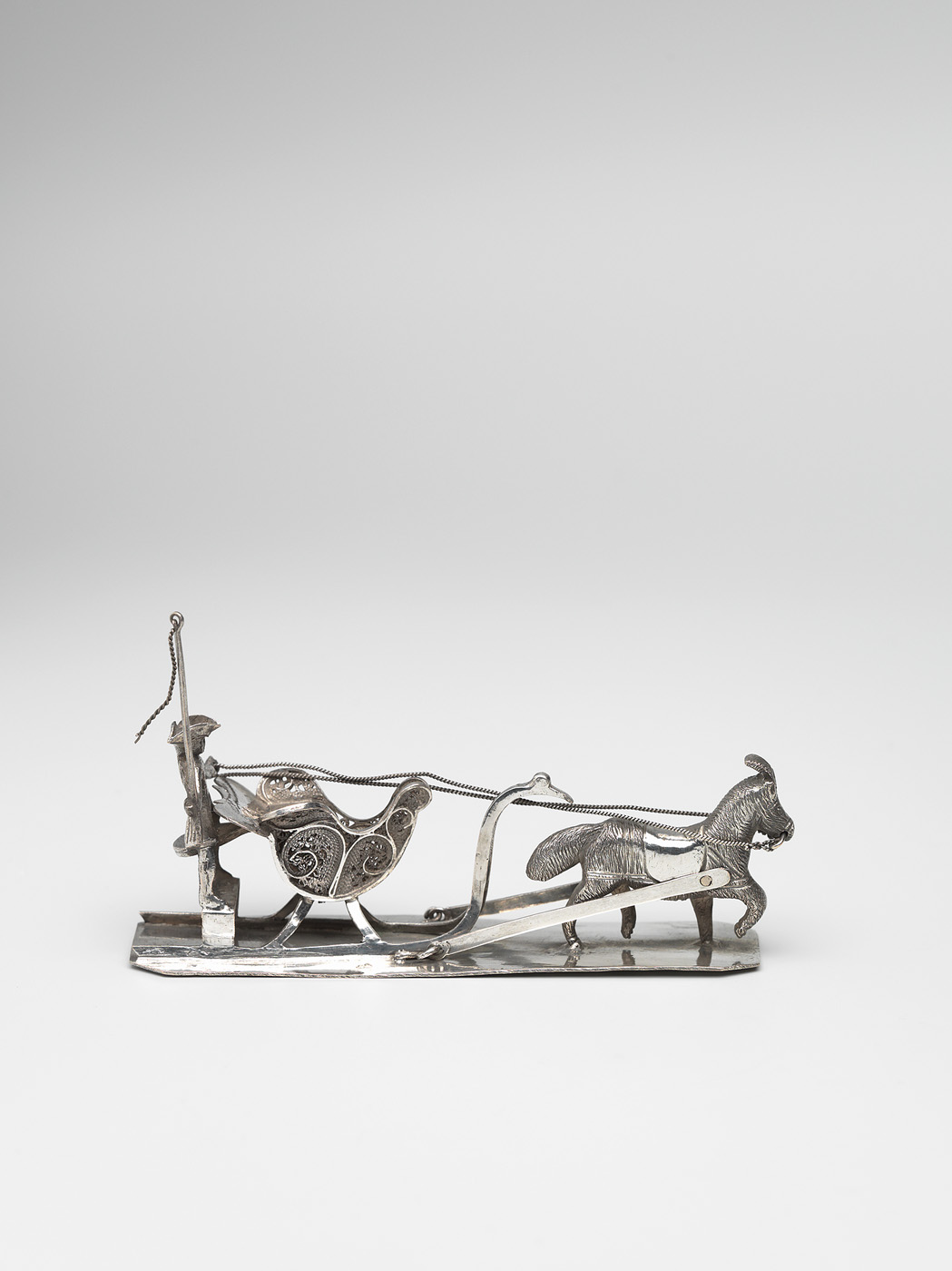 Arreslee in filigrain met koetsier en paard