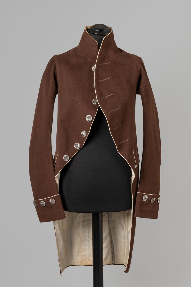 Bruine maskerade-frac met stalen knopen