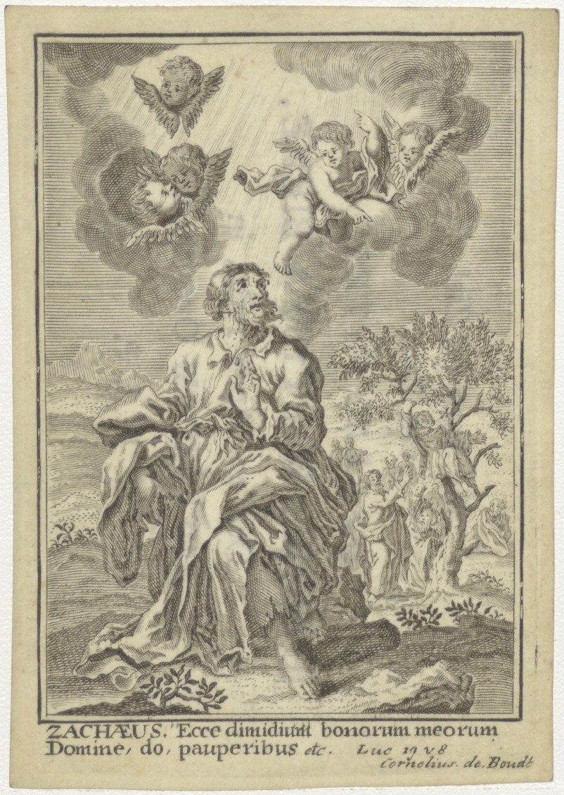 Man in vlammen biddend tot Christus aan kruis, kz. b...