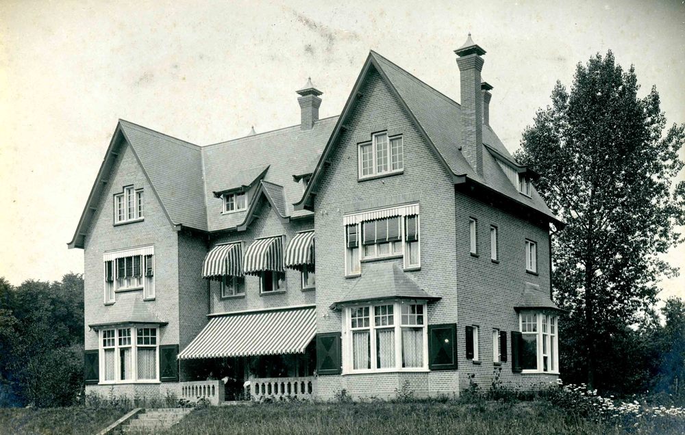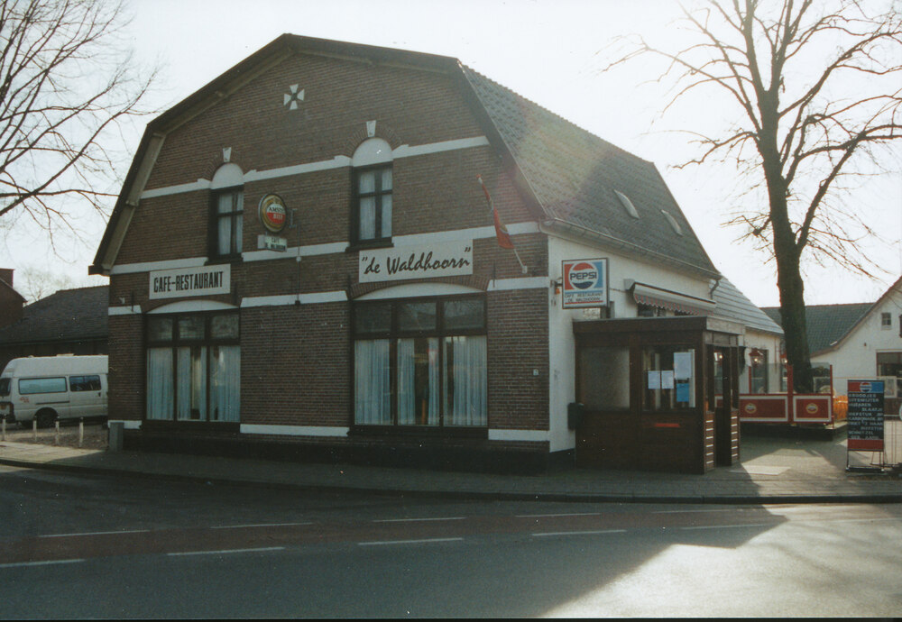 De zijgevel met pergola van hotel-pension De Zwaan i...