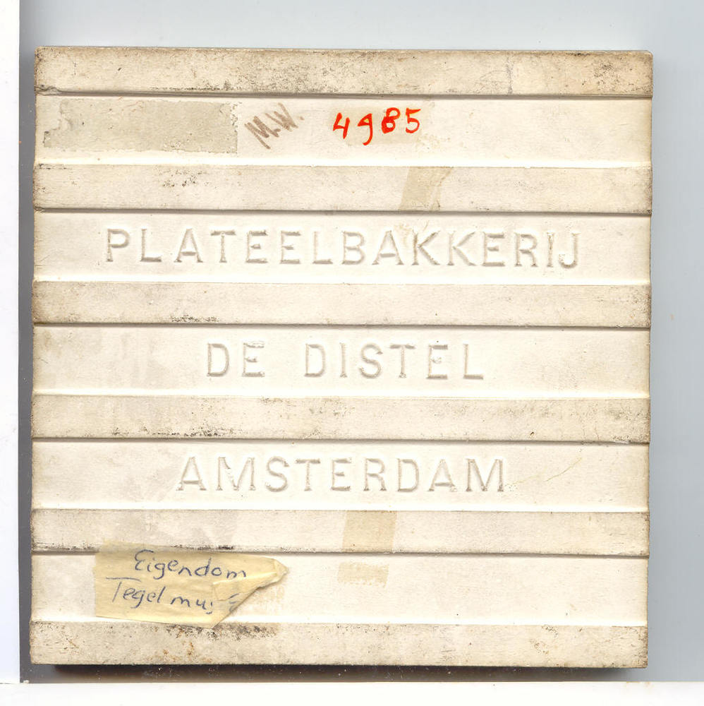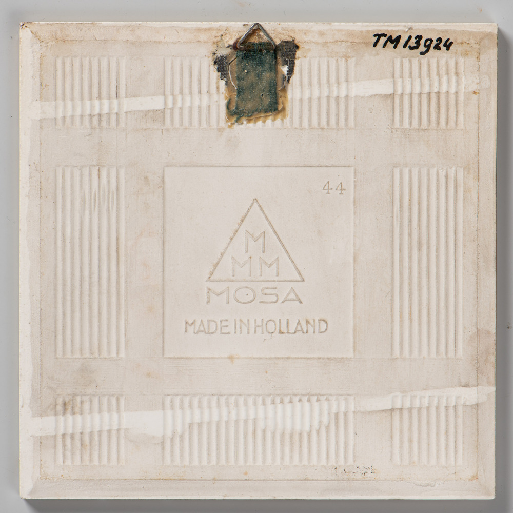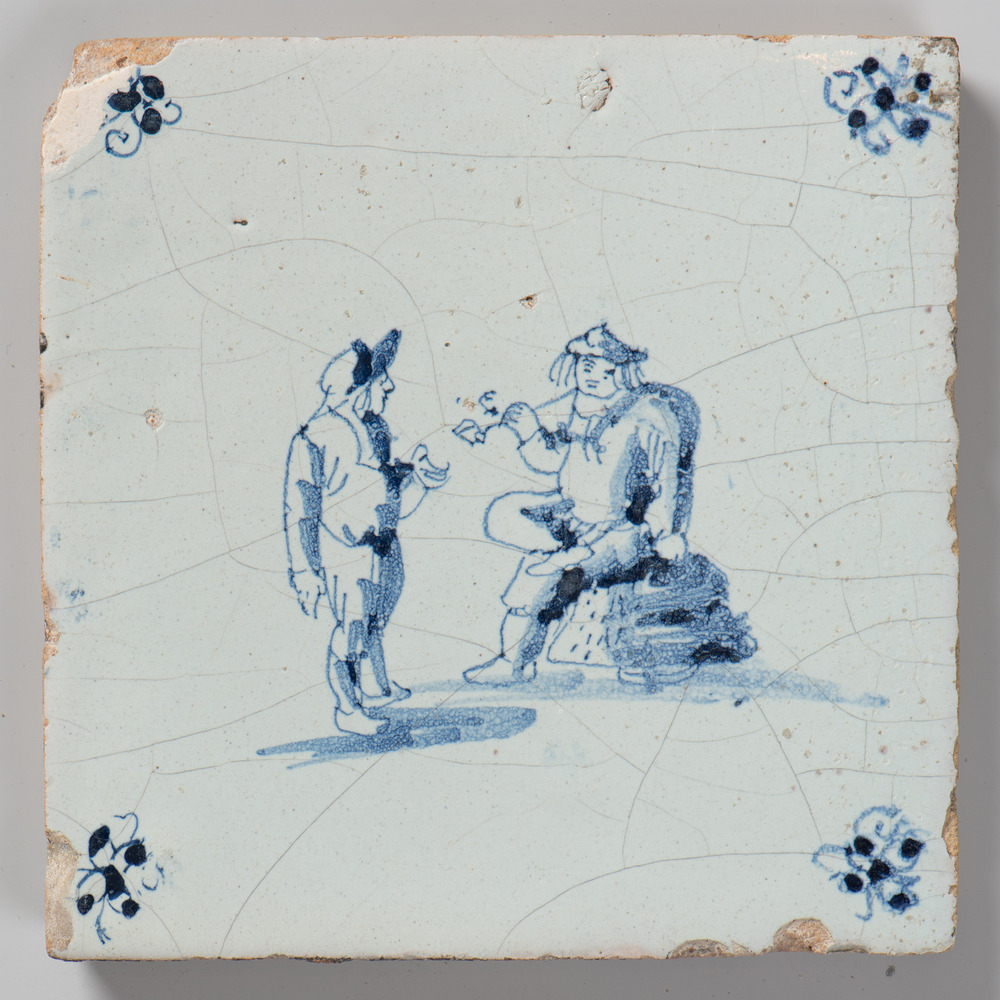 Tegel van keramiek met tinglazuur, voorstellende: wa...