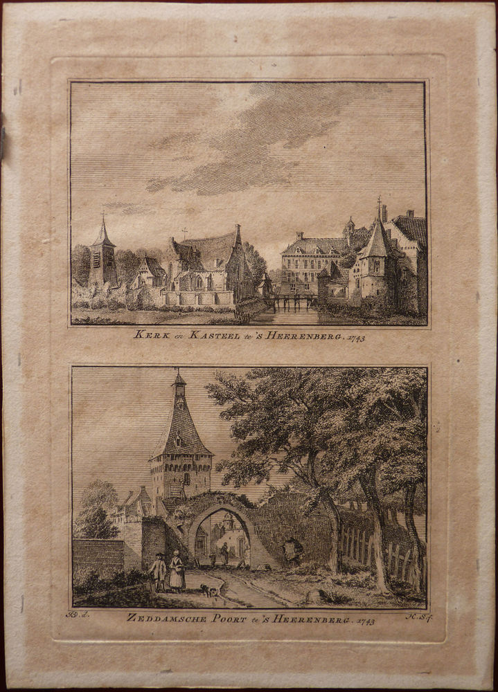 Gravure "Kerk en kasteel te 's-Heerenberg. Zeddamsch...