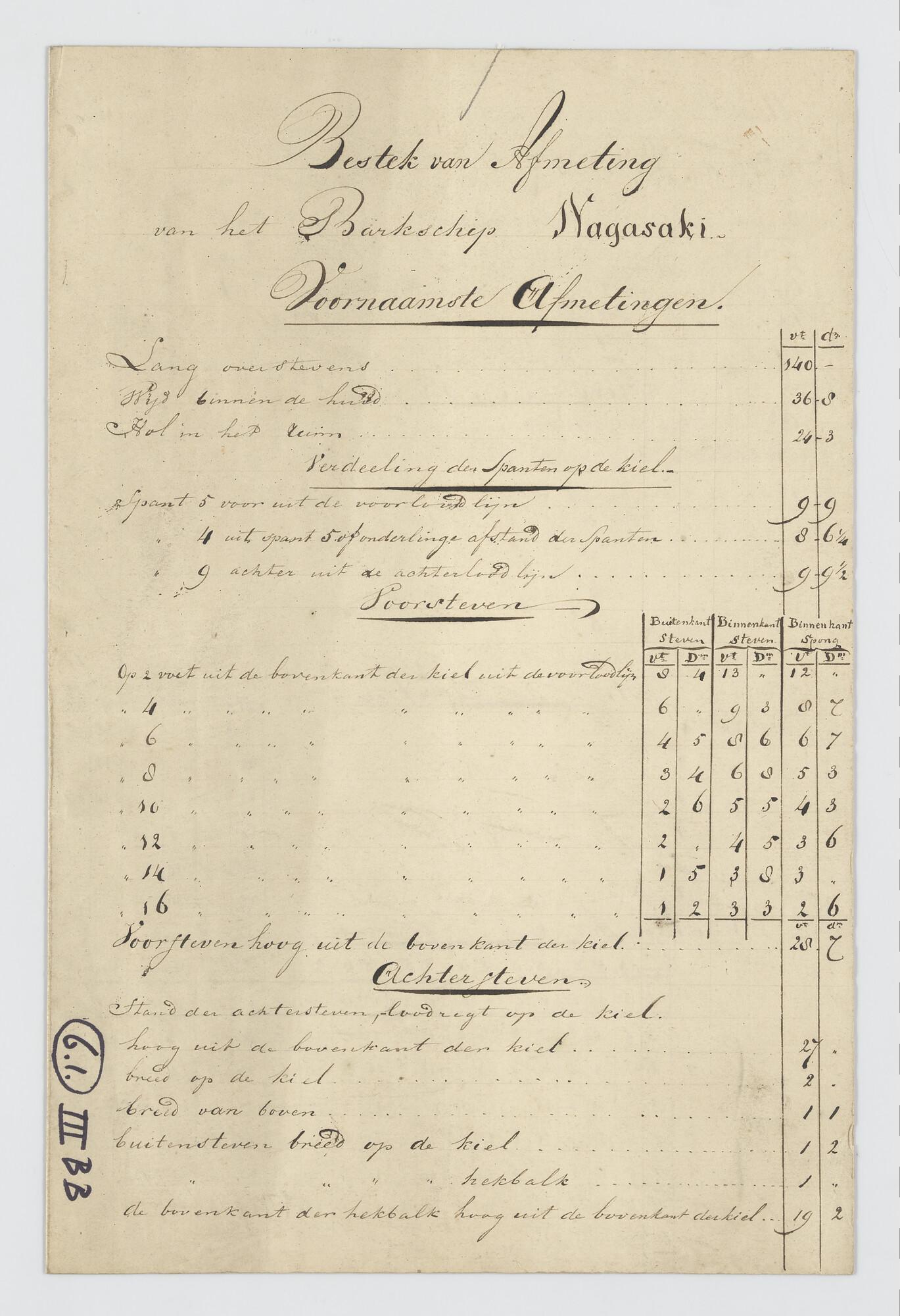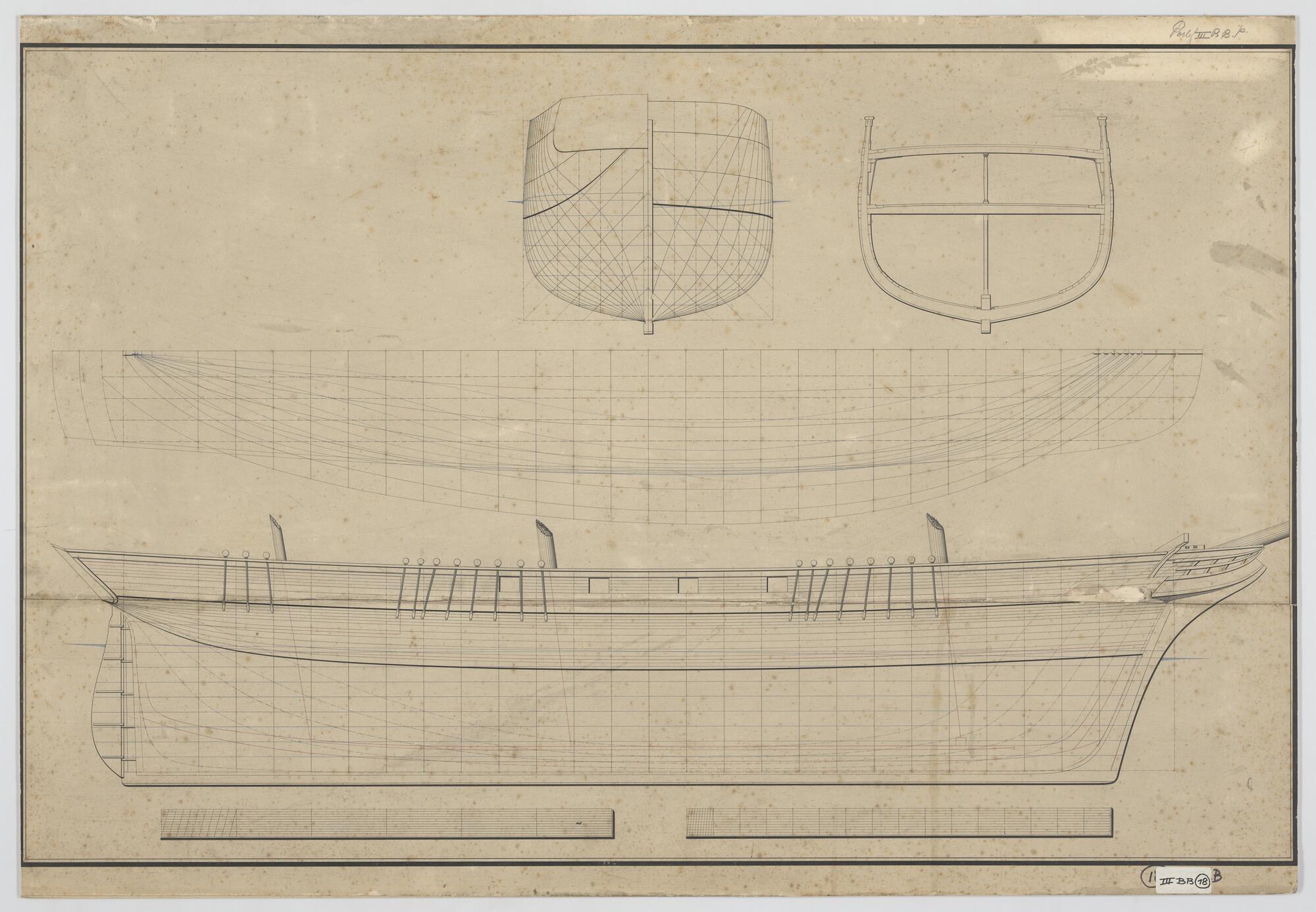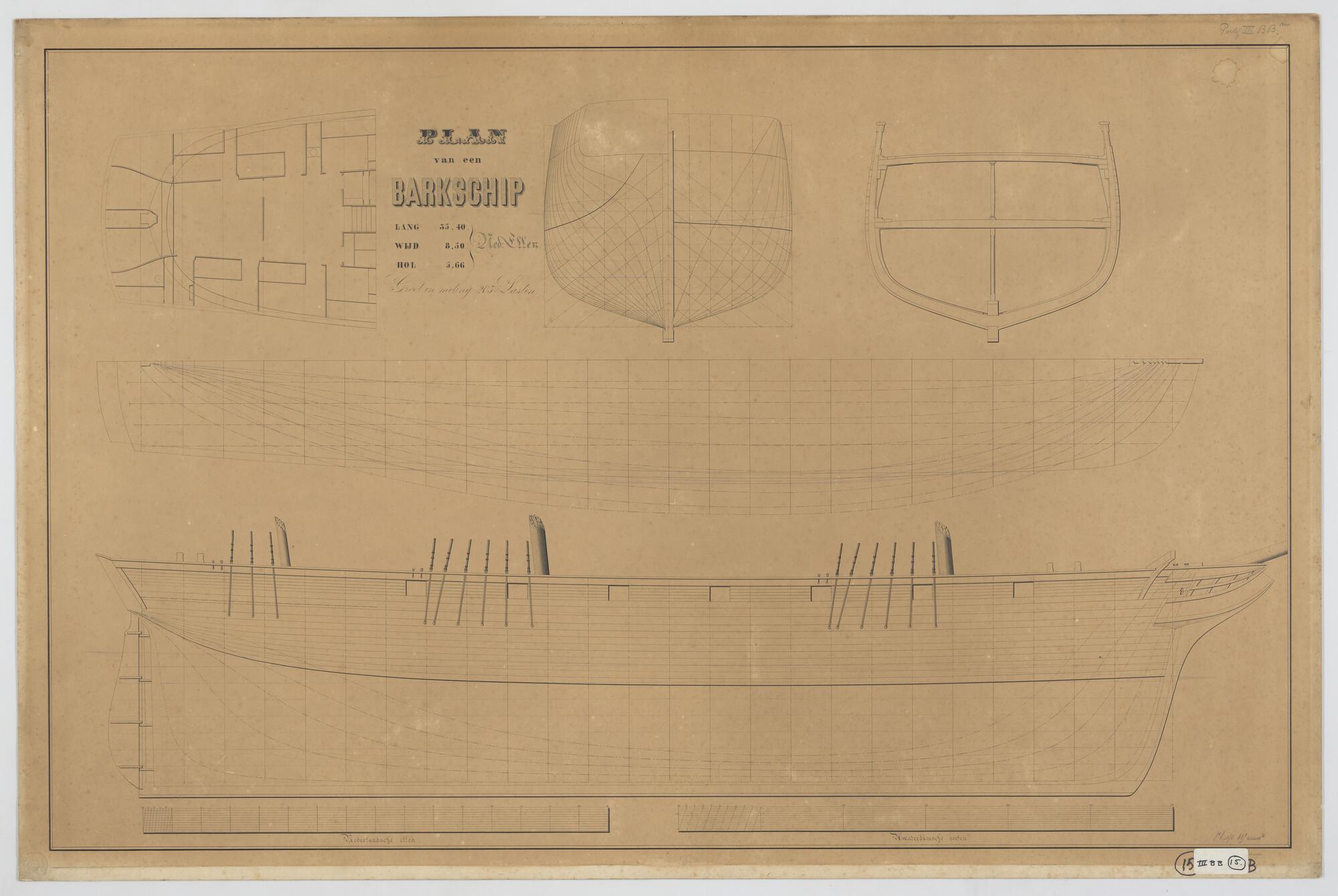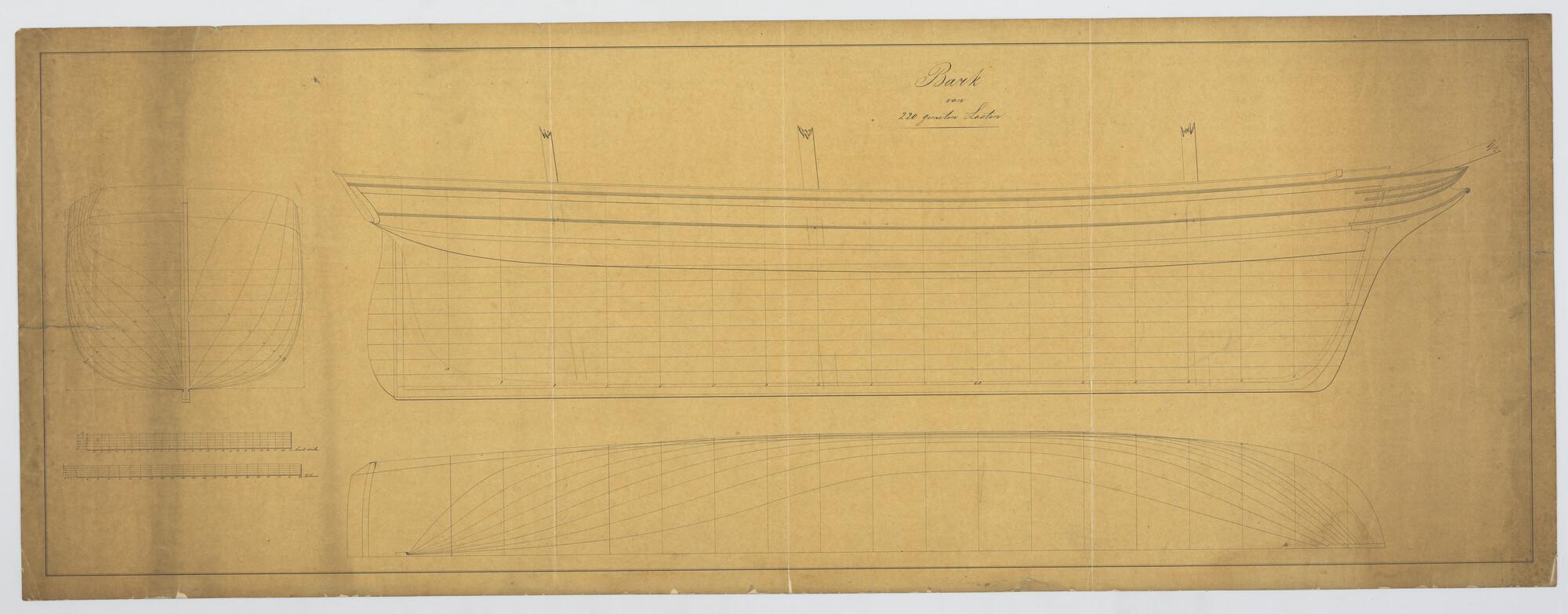 Lijnenplan van een barkschip van 220 gemeten lasten