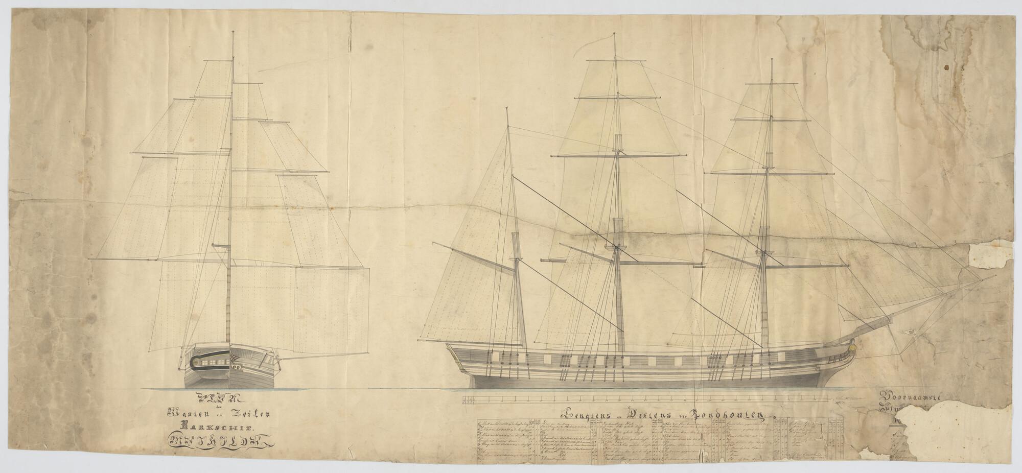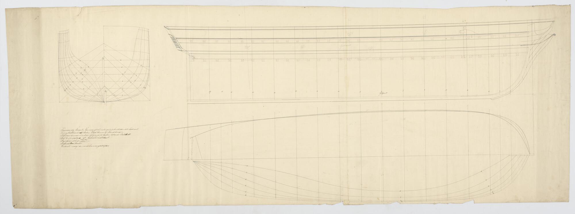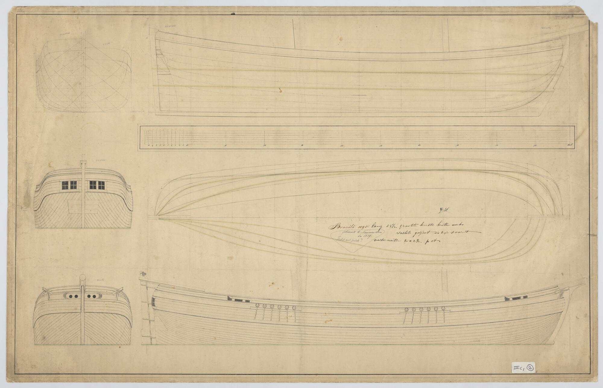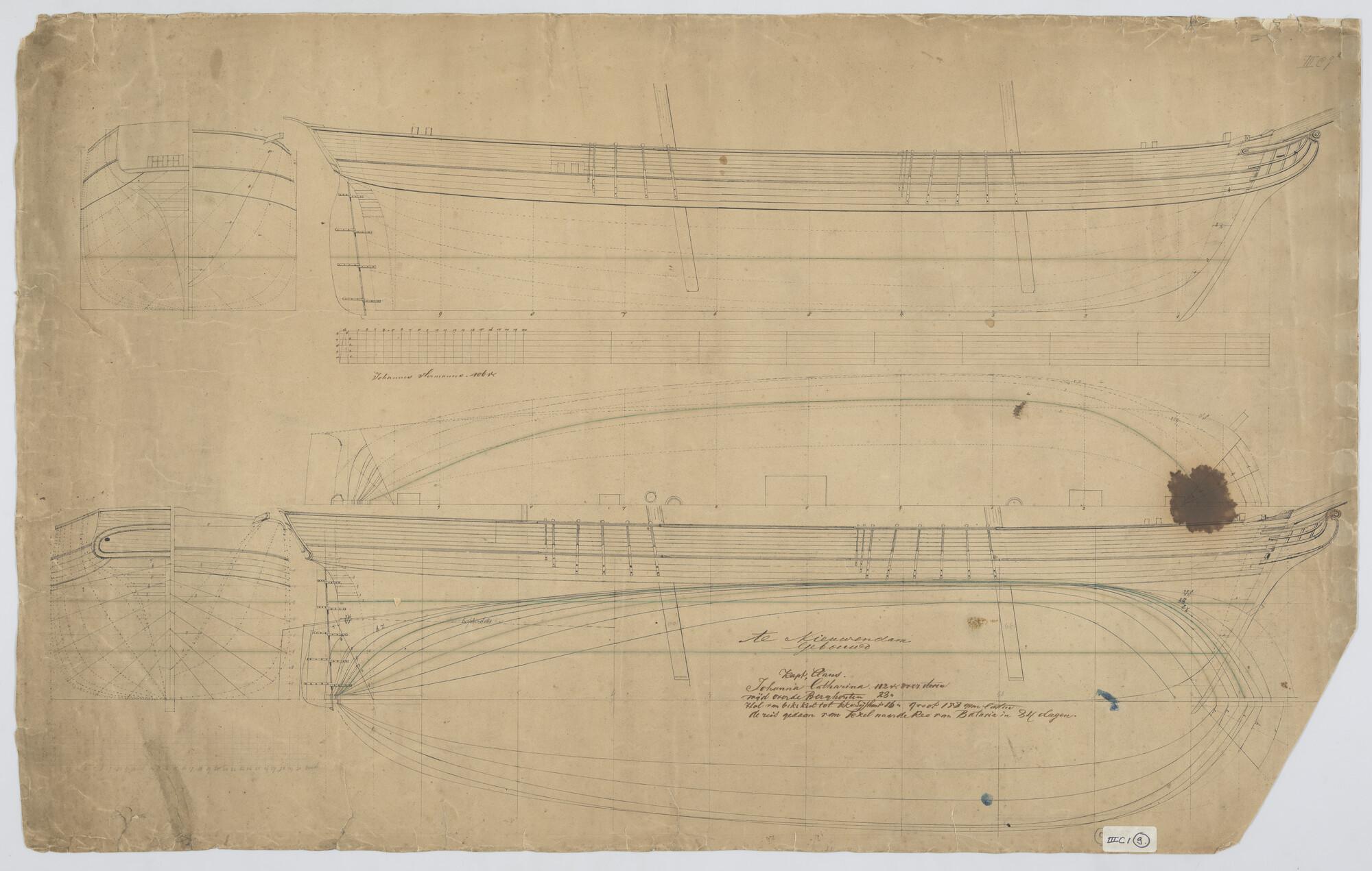 Lijnenplan van de driemastschoener Prinses Charlotte