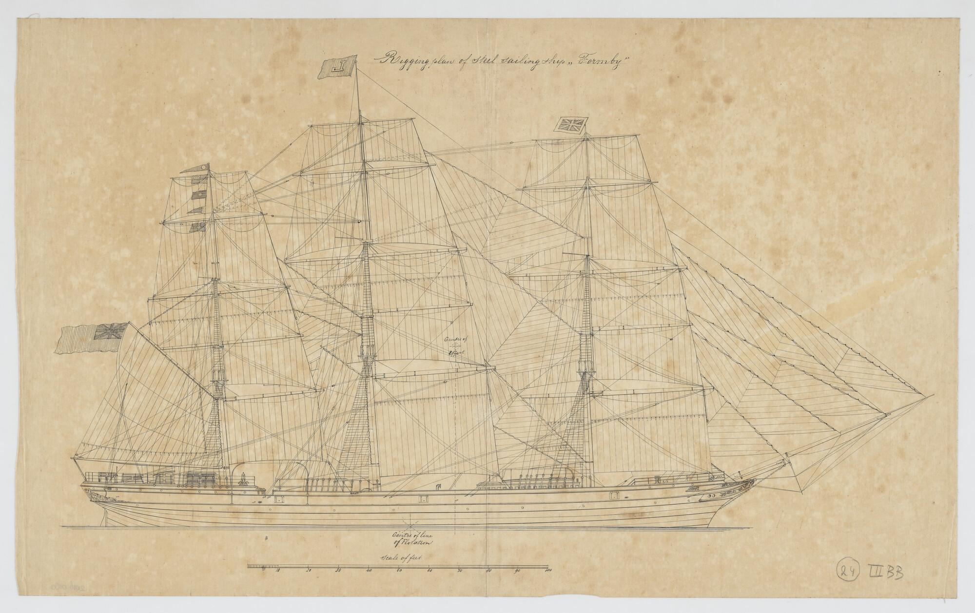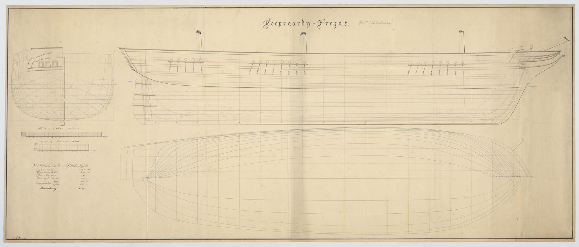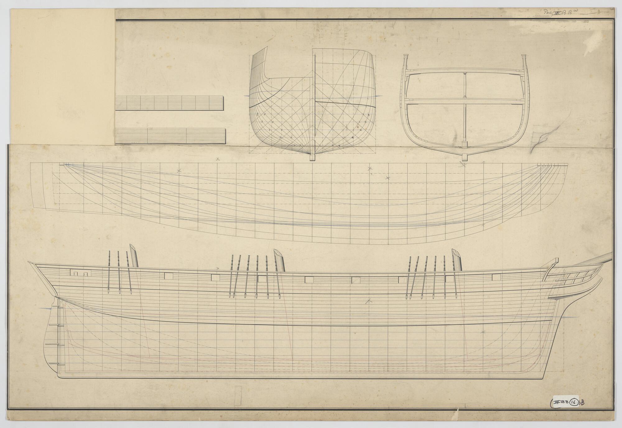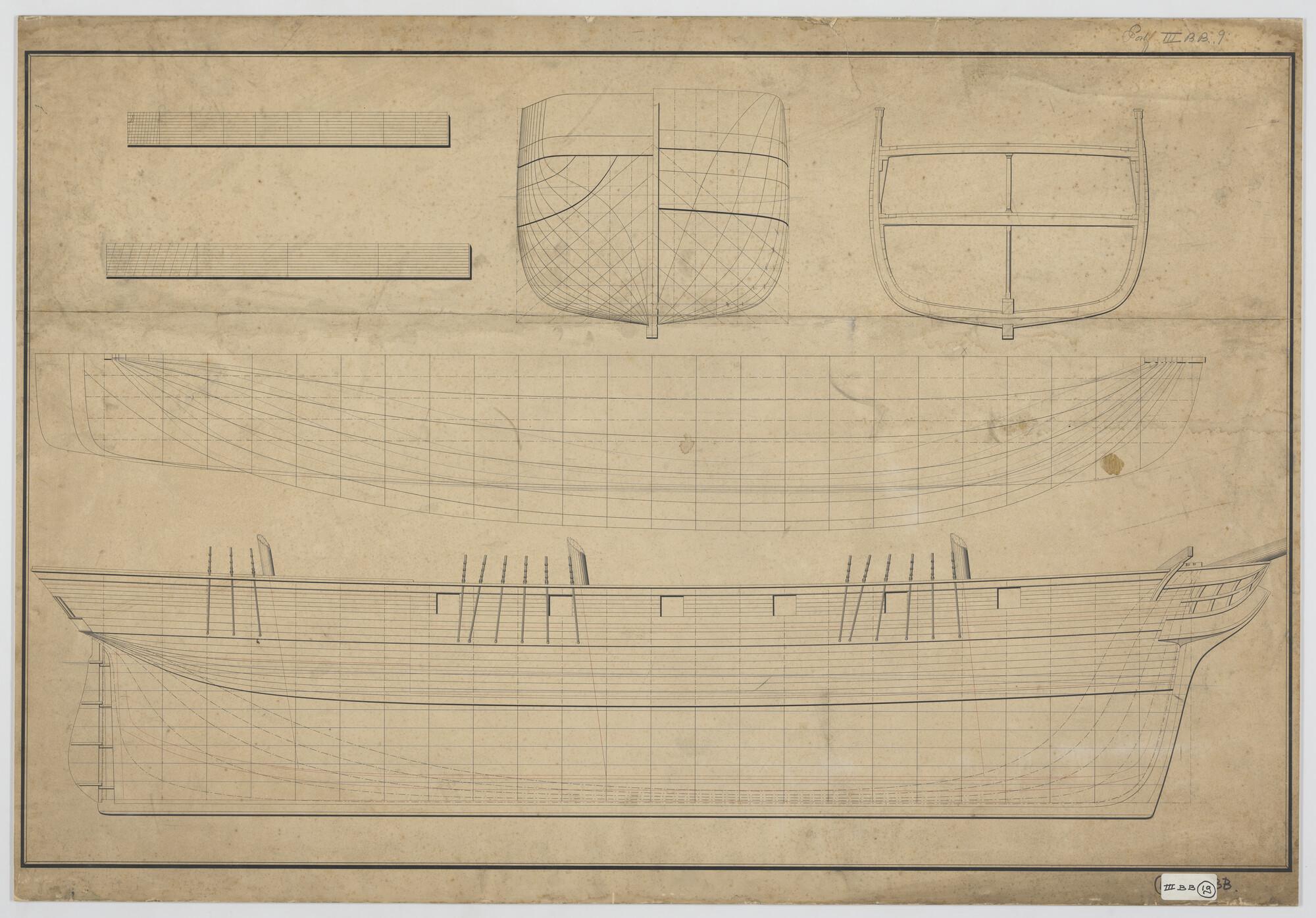 Lijnenplan van de driemastschoener Prinses Charlotte