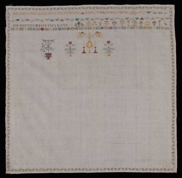 Grote vierkante onvoltooide merklap, gewerkt in krui...