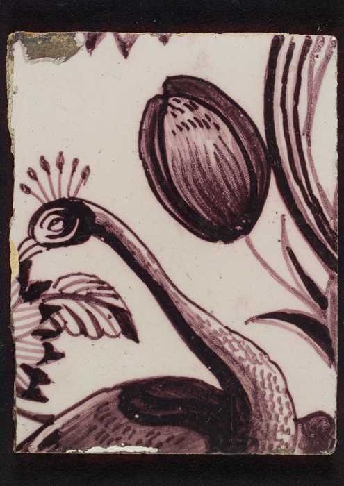 Paarse tegel uit tegelpilaster met pauw en tulp