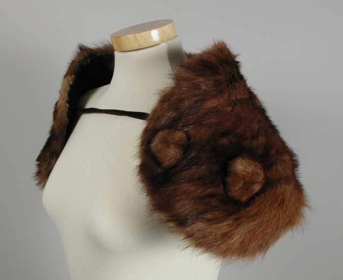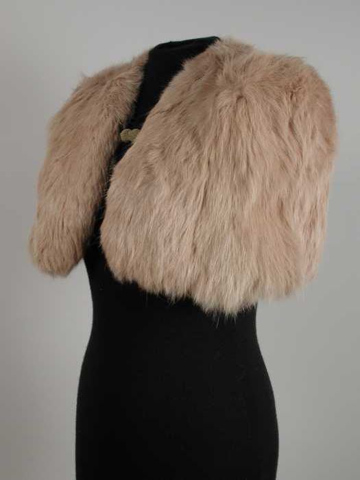 Pelerine van licht beige bont, voering van donkerbru...