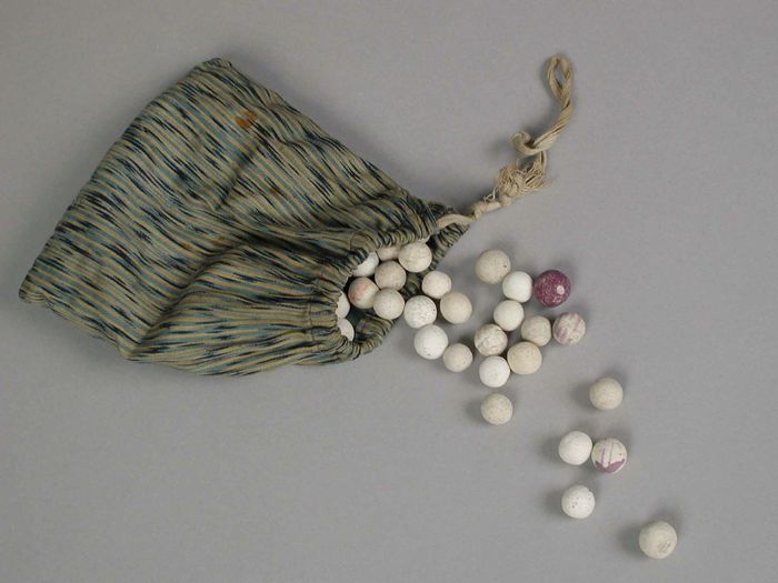 Groen, geel en zwarte knikkerzak met beige sluitkoord