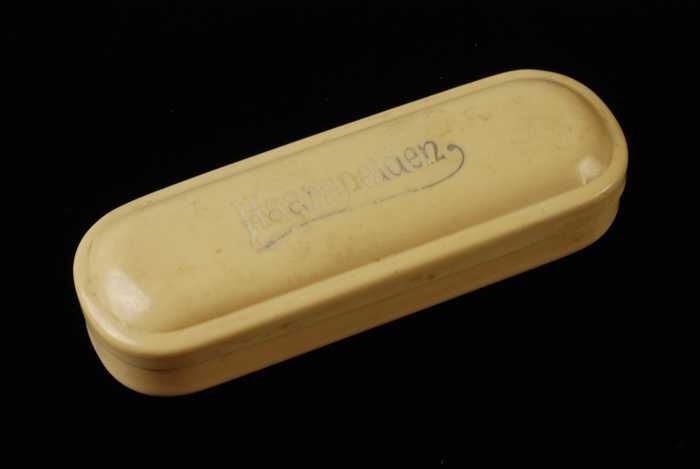Langwerpige haarspeldendoos van crèmekleurig kunstst...