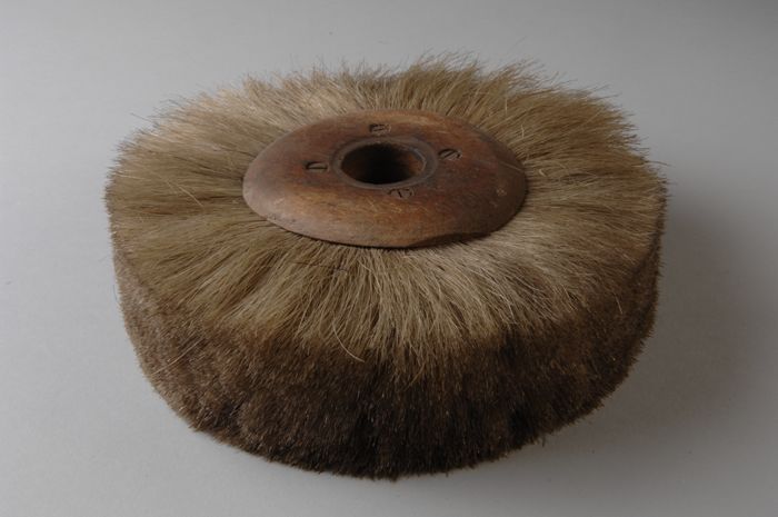 Twee ronde schijven van hout met borstel van haar (B...