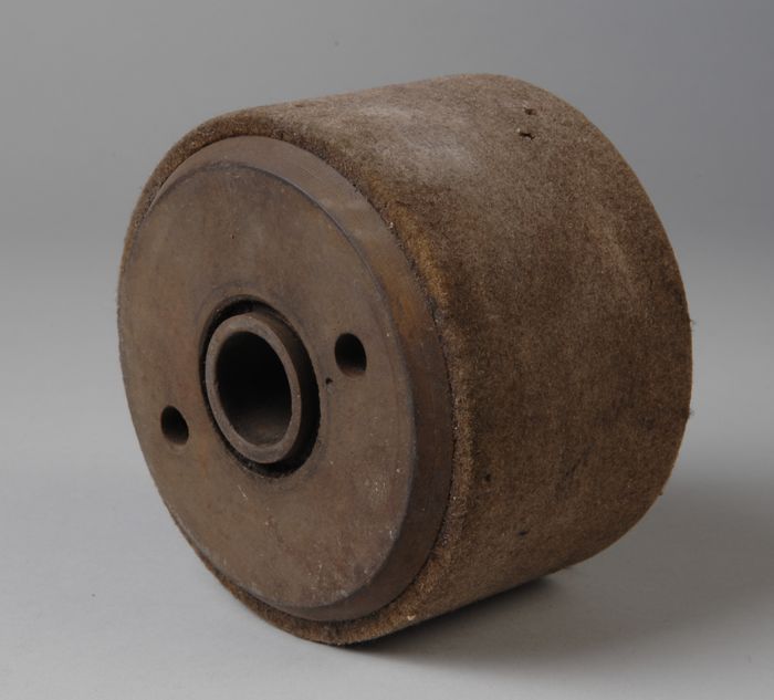 Twee ronde schijven van metaal met vilt (E-F), één s...
