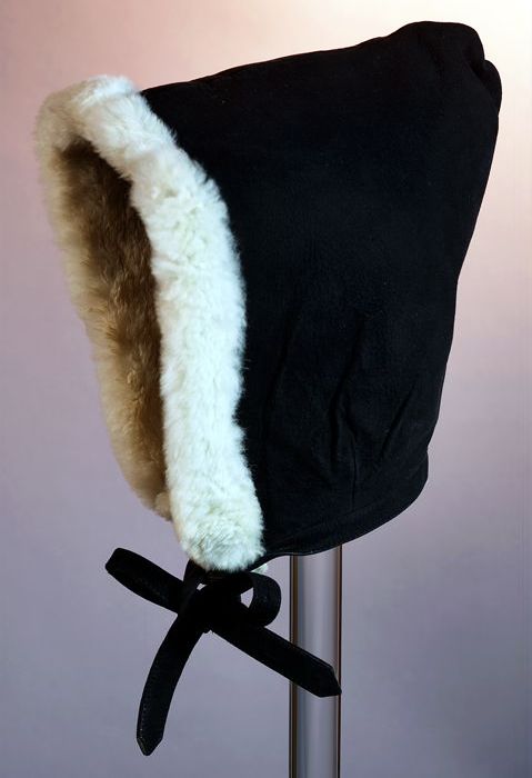 Zwart suède muts, capuchon model, met strikbanden en...