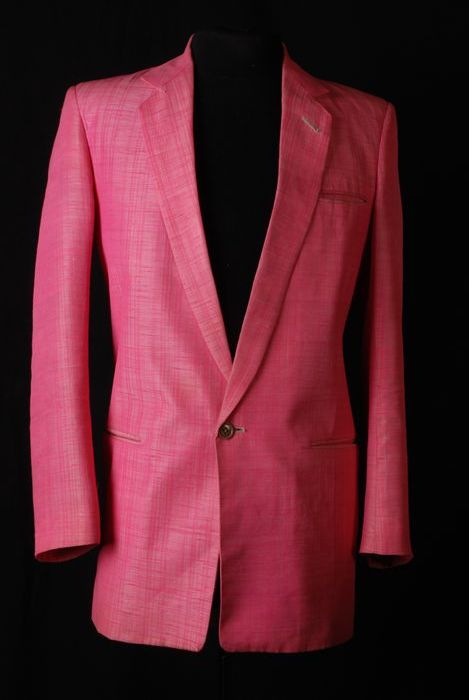 Colbertjas van roze kunstzijde, van kostuum van Jule...