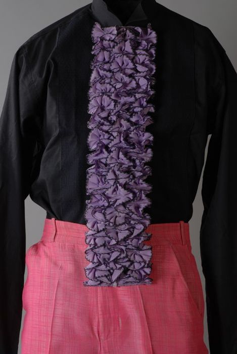 Rechthoekig jabot van lila katoen, gedragen bij kost...