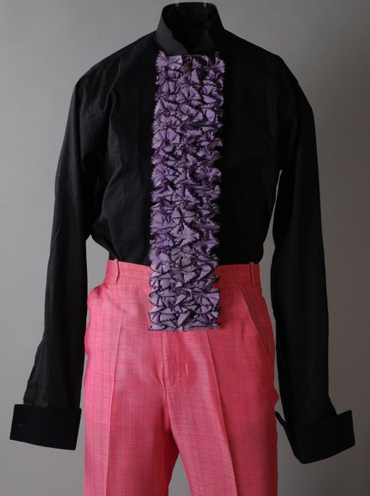 Broek van roze kunstzijde, van kostuum van Jules Dee...