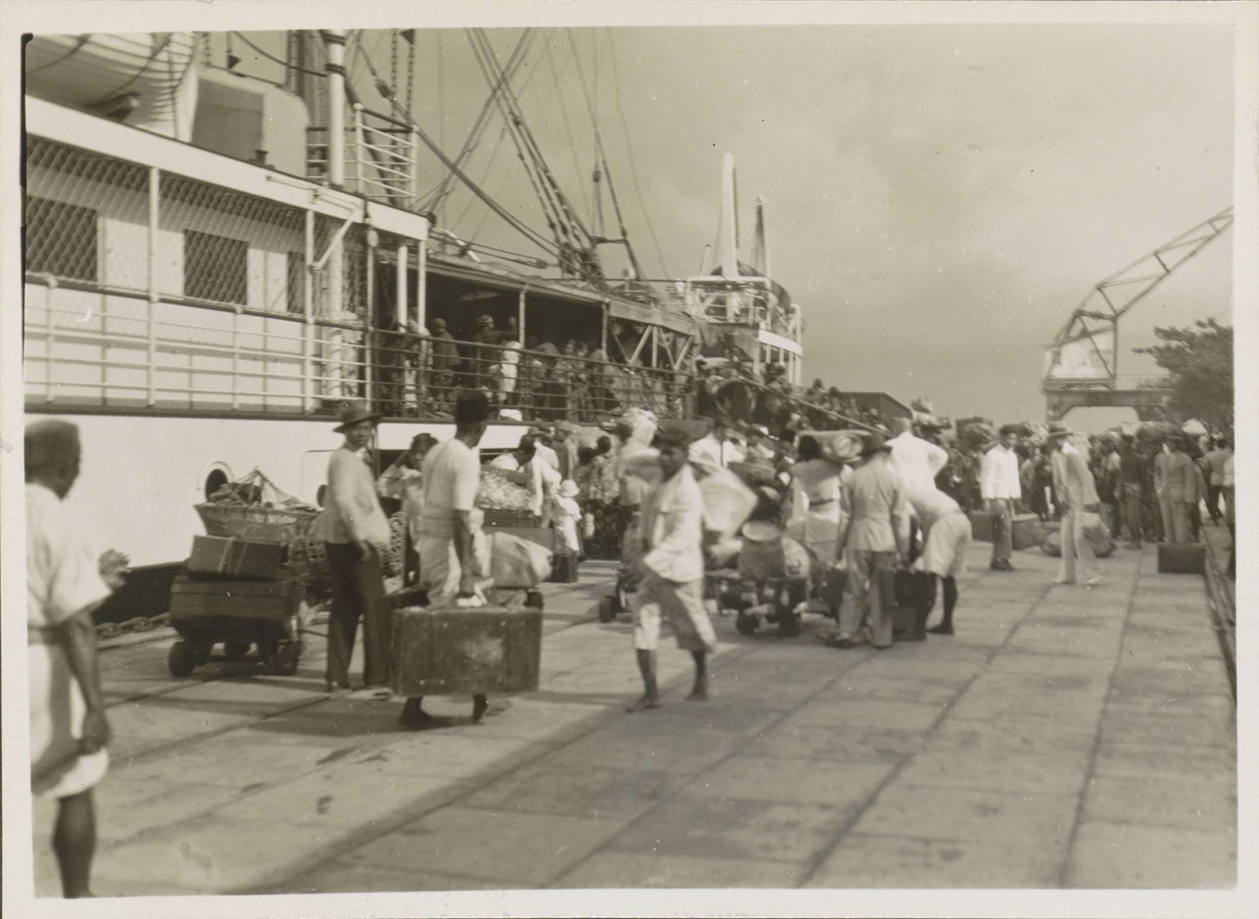 Laad- en loswerkzaamheden op de kade van Tandjong Priok
