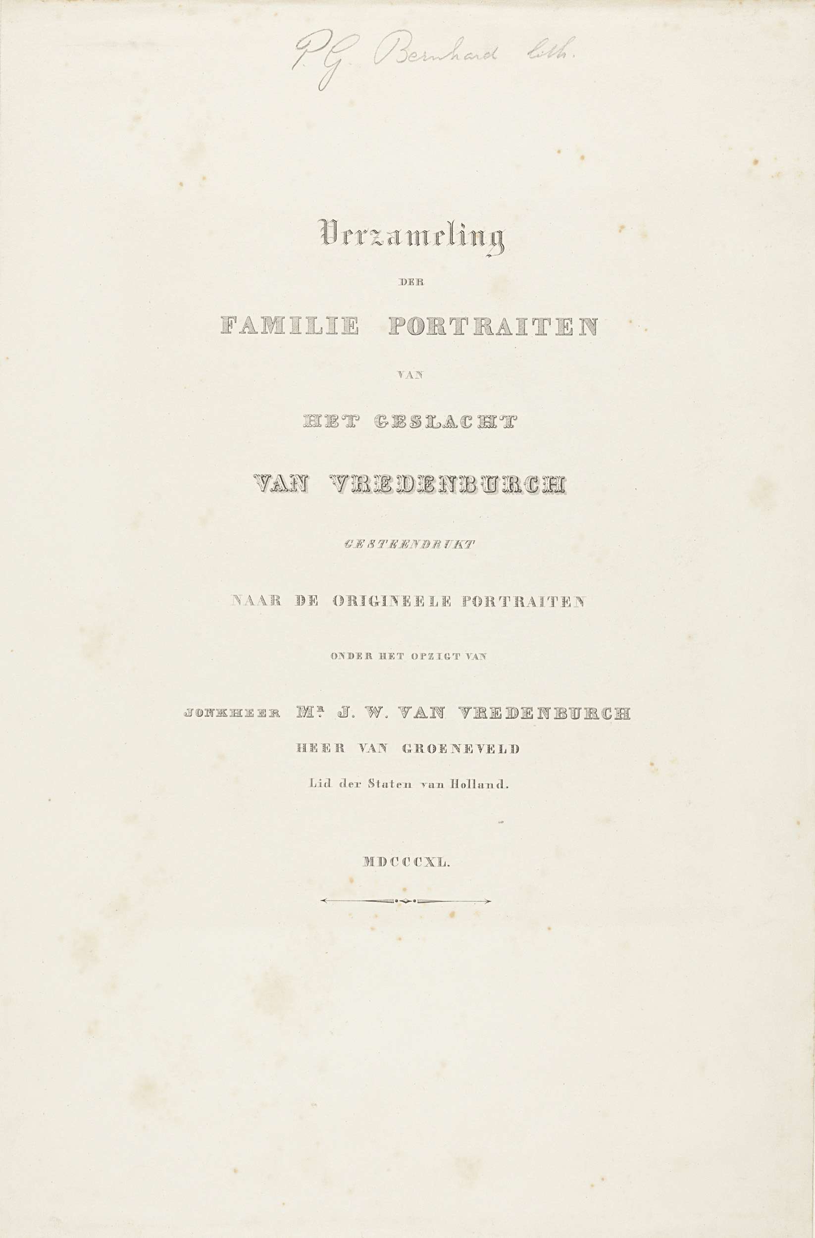 Titelprent voor serie familieportretten van het gesl...