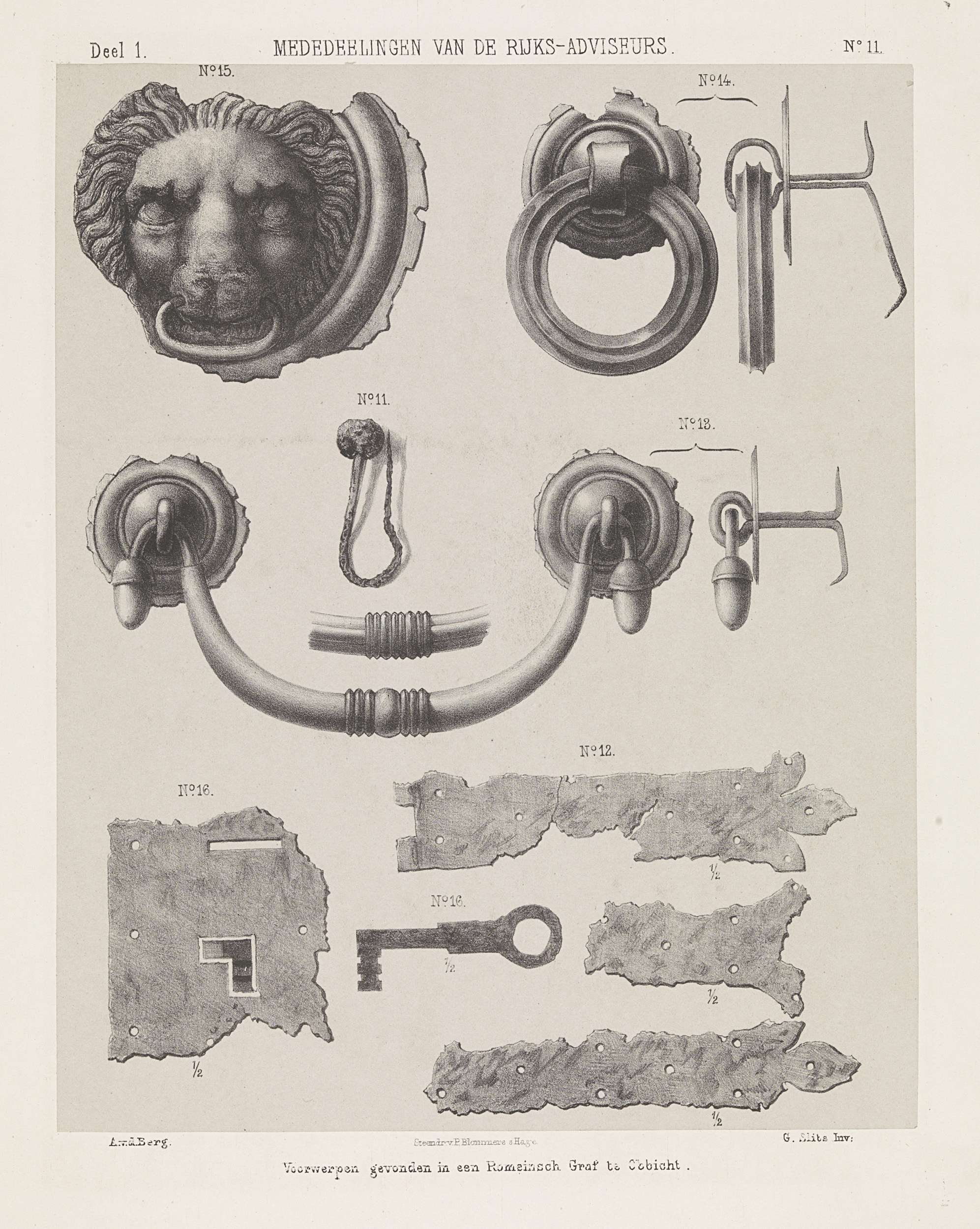 Opgegraven Romeinse handvatten, deurknoppen en sloten