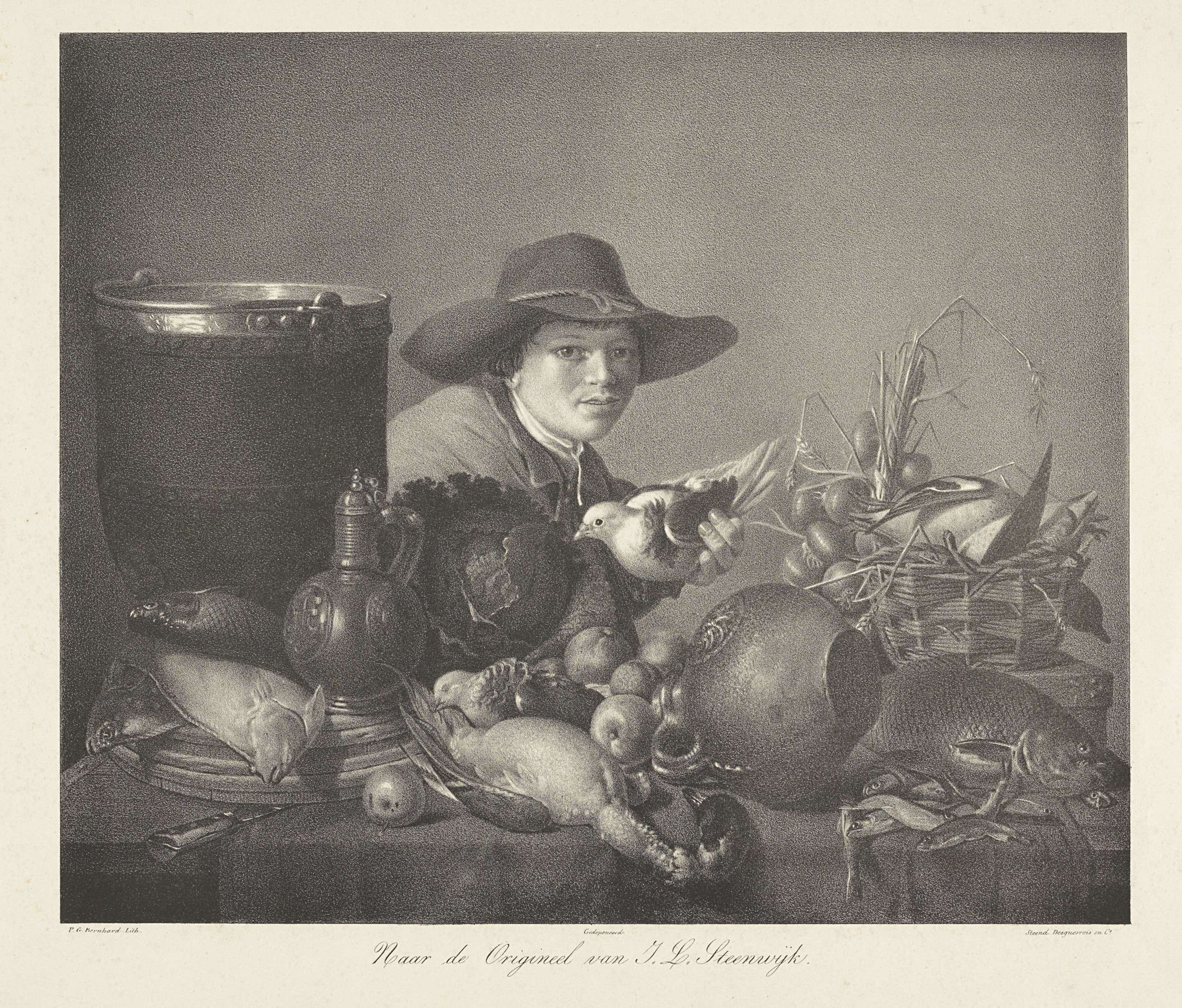 Jongen met duif en stilleven
