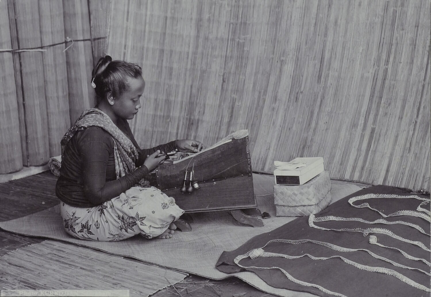Een Javaanse vrouw die aan het batikken is