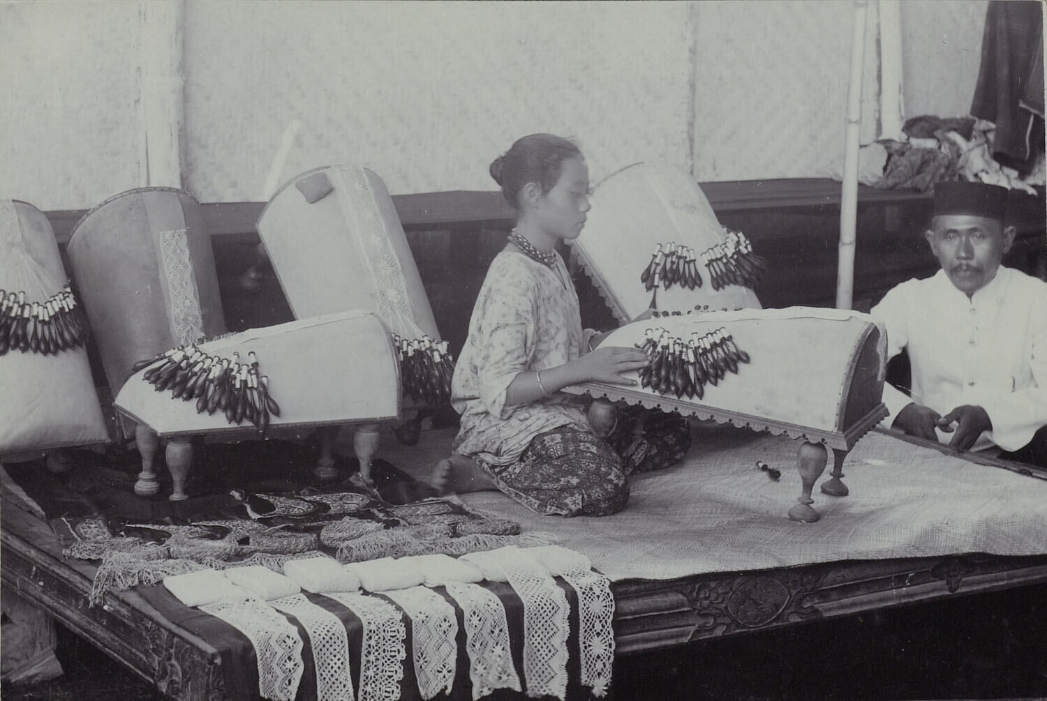 Portret van een batikster aan het werk