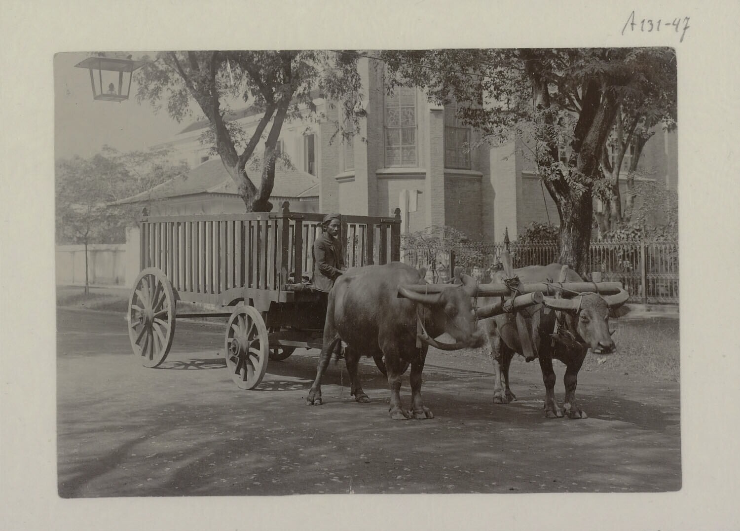 Houten kar bespannen met buffels