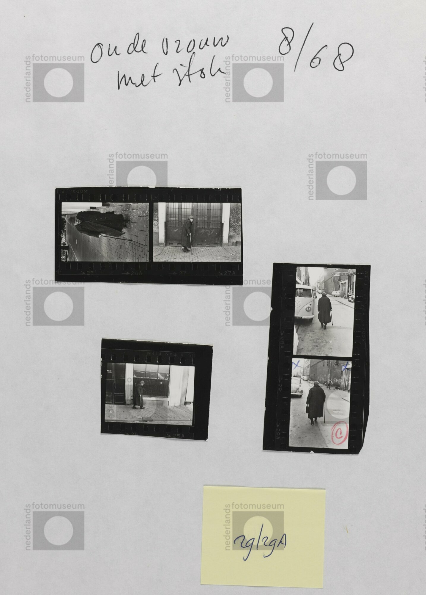Amsterdam, Jodaan. Oude vrouw met een wandelstok