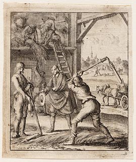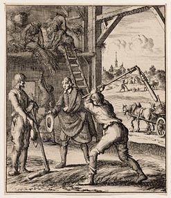 Schrijver bezoekt een schuur met 2 dorsende boeren