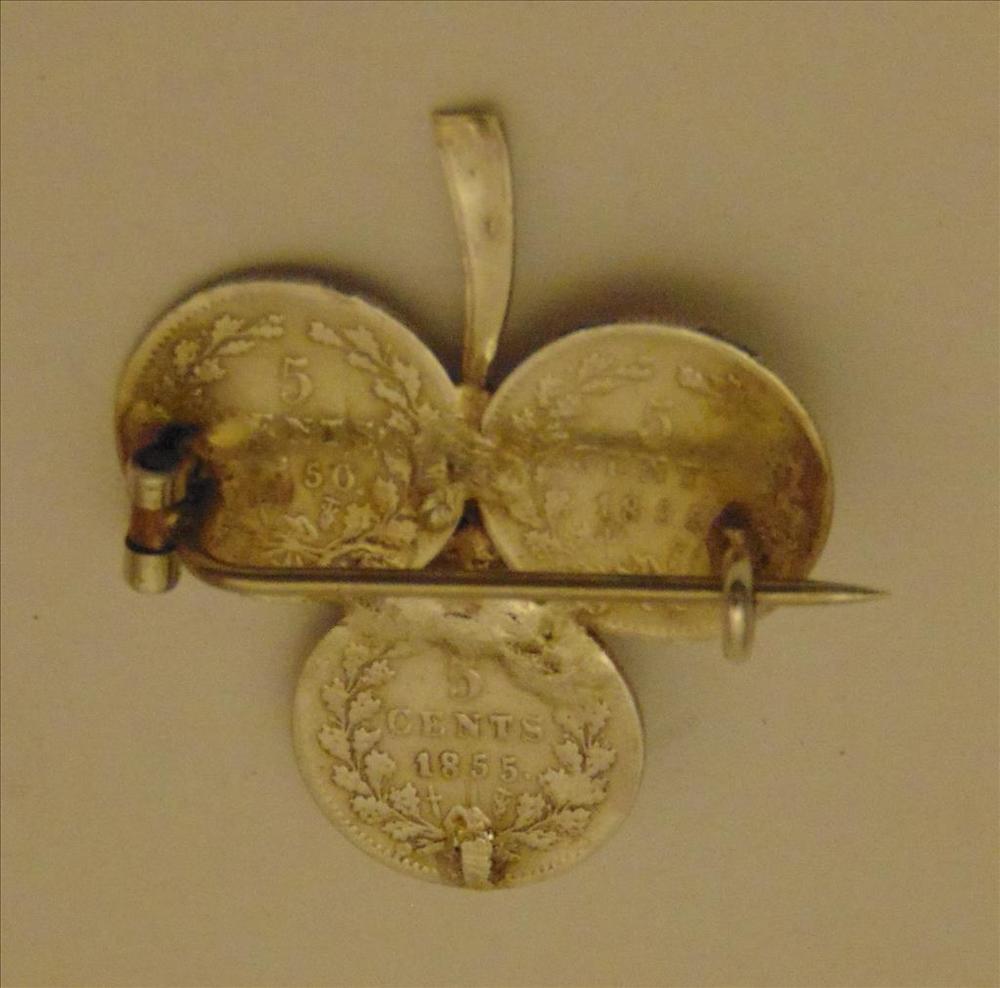 zilveren broche in de vorm van een klavertje 3 gemaa...